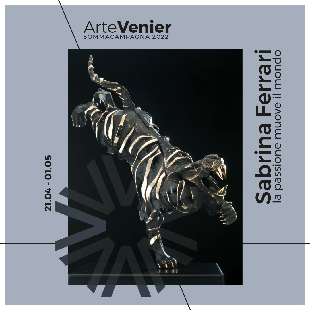 Sabrina Ferrari, scultrice. I suoi bronzi trascendono la pura figurazione, coniugando la potenza della materia con lo slancio delle superfici, fino ad ottenere una forte elegante dinamicità nelle sue opere in bronzo, rifinite e lucidate a mano. Animali in movimento, corpi sospesi come oggetti dimenticati. Ricerca di innovazione e un occhio di riguardo alla tradizione dei grandi maestri del passato. Artista internazionale ha collaborato con importanti artisti italiani e stranieri e ha insegnato discipline plastiche presso il liceo artistico di Verona. E’ molto richiesta dal mercato d’arte internazionale.