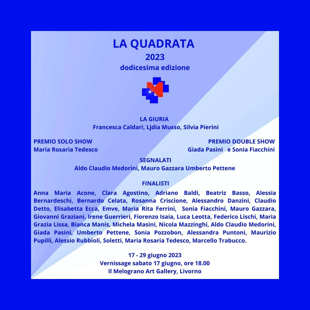 Sabato 18 giugno si apre a Livorno la rassegna dei finalisti della dodicesima edizione del premio d'arte contemporanea "La Quadrata", ideato e promosso da Il Melograno Art Gallery