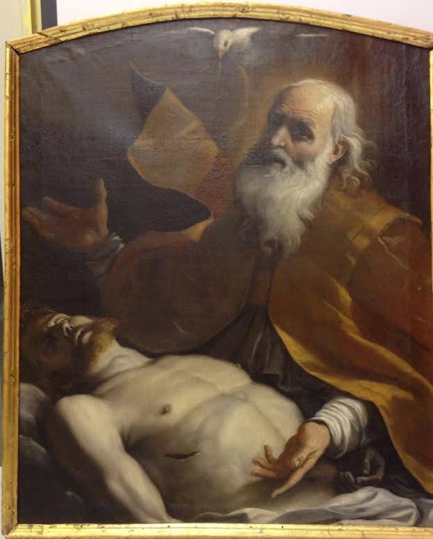 La commovente composizione de La SANTISSIMA TRINITÁ raffigura Dio Padre che