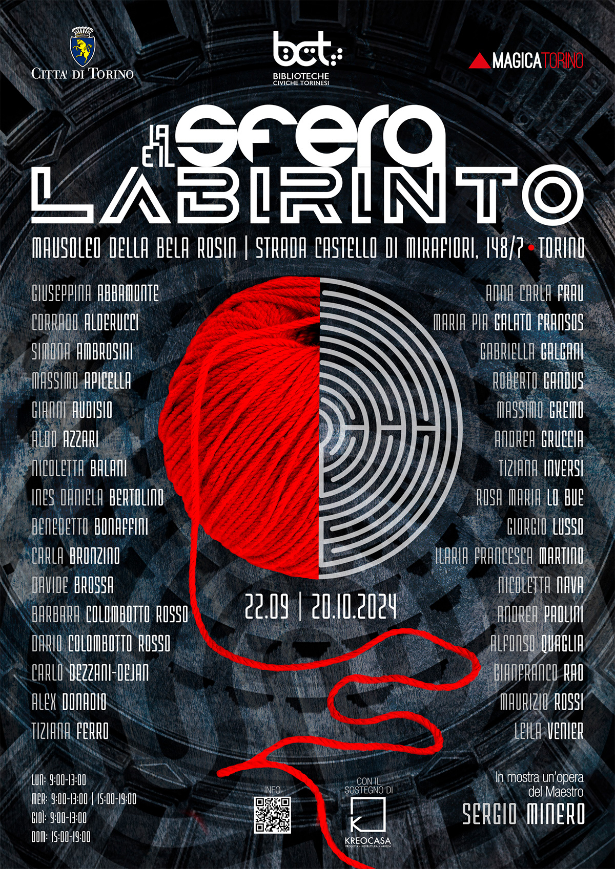 L’esposizione, realizzata da Magica Torino in collaborazione con Biblioteche civiche torinesi, è un dialogo stimolante tra l’Astrazione del Labirinto e l’Utopia della Sfera.