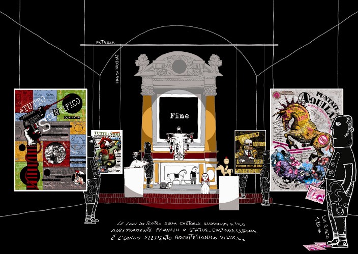 All’ordine del giorno: “La STRATEGIA di ABACUC” di Andromalis e Debora Malis. Nel suggestivo spazio sconsacrato della Chiesa dei Bigi compaiono piccoli espropri narrativi dal mondo visionario dei film di Monicelli, arbitrari e amorevoli attentati immaginifici, disordinati sabotaggi visivi dei “soliti ignoti” dell'arte.