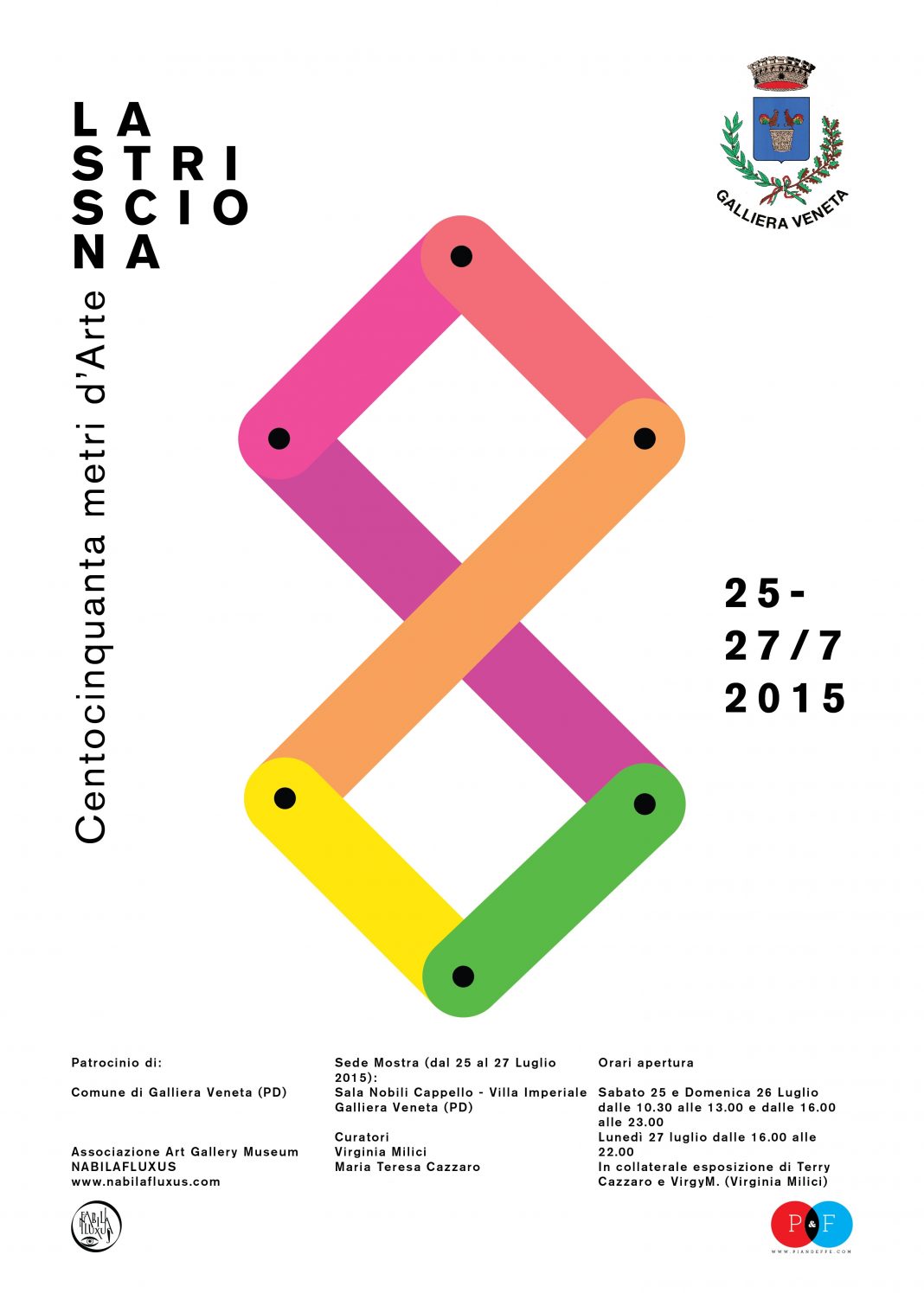La StriscionA sarà quindi portata in mostre e performance, itineranti da città in città. Itinerario che ne modifica di volta in volta la presentazione a cura dei vari collaboratori e curatori che la adotteranno per il periodo espositivo. Producendo nei molteplici luoghi e nelle azioni degli Artisti, operatori Artistici ,Critici ,pubblico ,istituzioni vasta documentazione di contemporaneità .