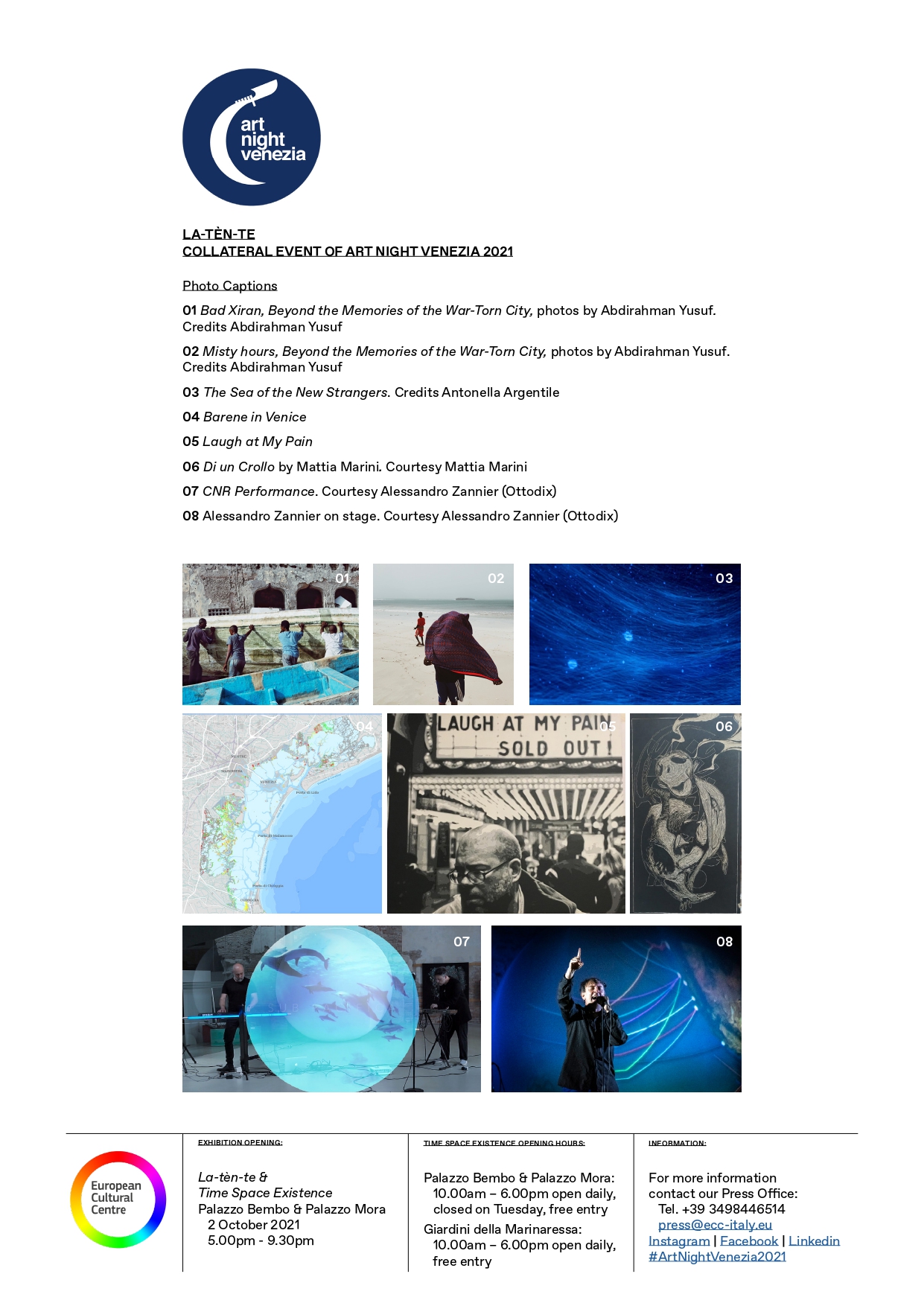 con la mostra La-tèn-te e l’apertura serale di Time Space Existence nelle storiche sedi di
