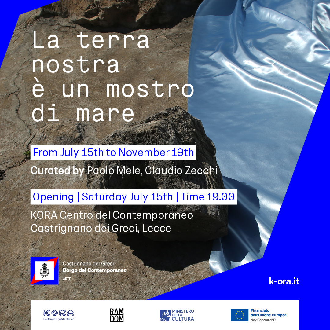 Inaugura, sabato 15 luglio alle ore 19,00, il terzo ciclo espositivo di KORA-Centro del Contemporaneo dedicato al tema dell’abitare con la mostra La terra nostra è un mostro di mare, a cura di Claudio Zecchi e Paolo Mele.