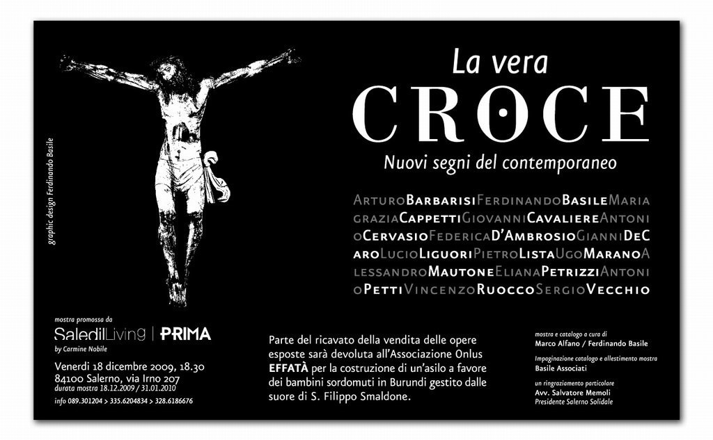 Venerdì 18 dicembre 2009, alle ore 18,30, presso lo spazio SALEDIL Living PRIMA, in Via Irno 207, a Salerno, sarà inaugurata la mostra La Vera Croce - Nuovi Segni del Contemporaneo, curata da Marco Alfano e Ferdinando Basile.