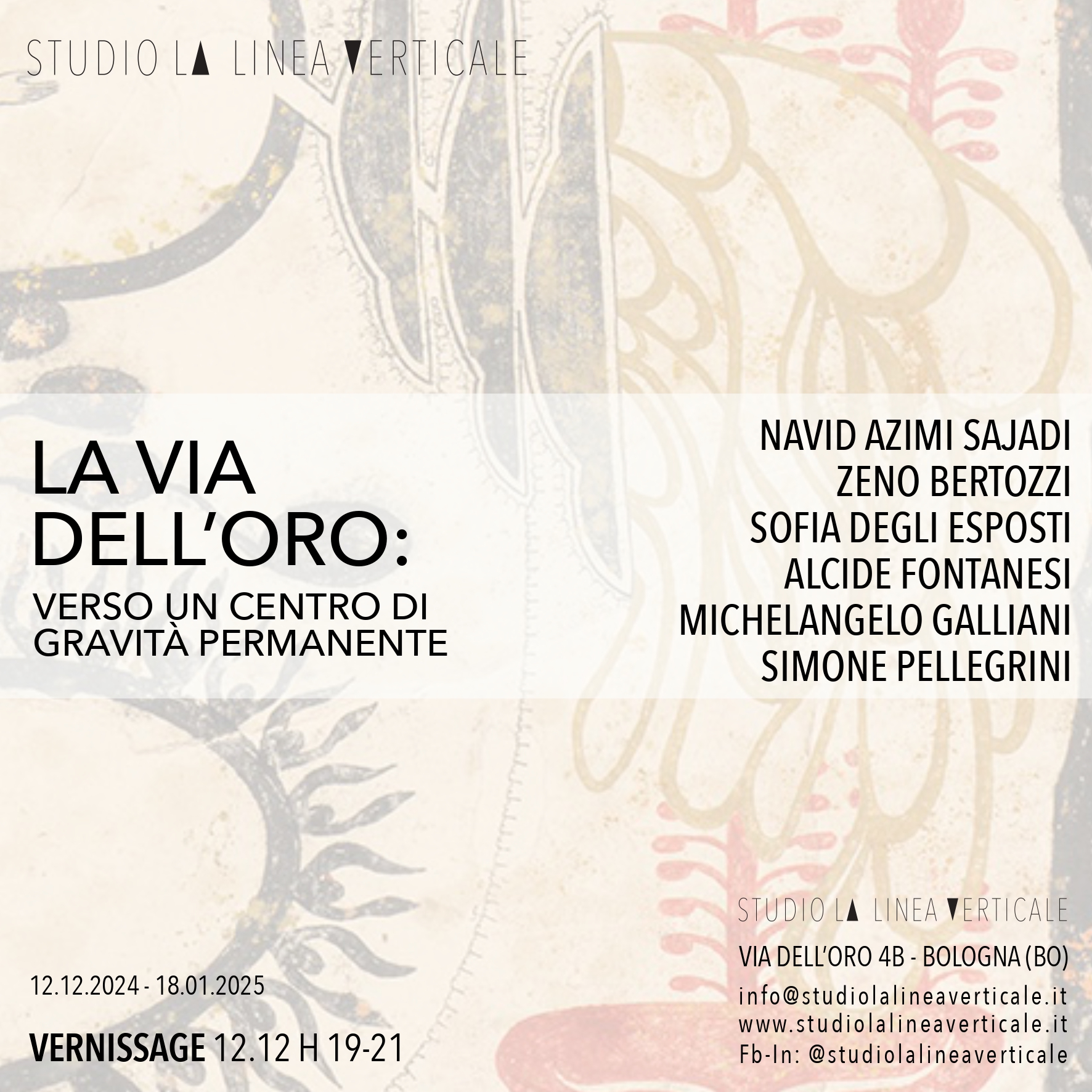 Segui gli aggiornamenti e le anteprime della mostra sui social media e condividi usando gli hashtag ufficiali: #studiolalineaverticale #laviadelloro