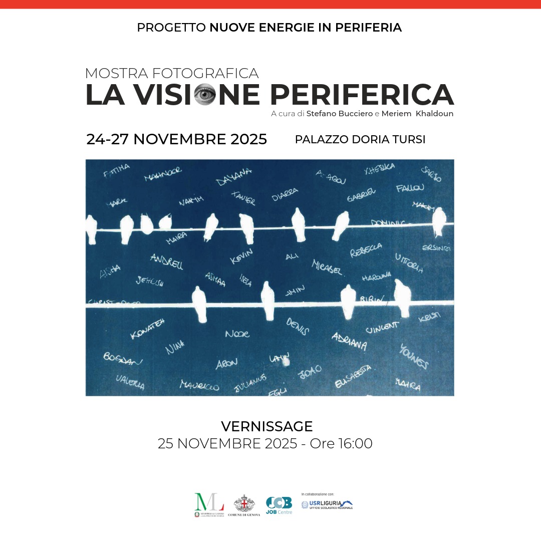 Mostra fotografica “La visione periferica”, parte del progetto “Nuove Energie in Periferia” racconta il percorso di orientamento e accompagnamento personalizzato rivolto a ragazze e ragazzi con cittadinanza extra-UE, residenti o studenti nei quartieri più esposti a vulnerabilità sociale.