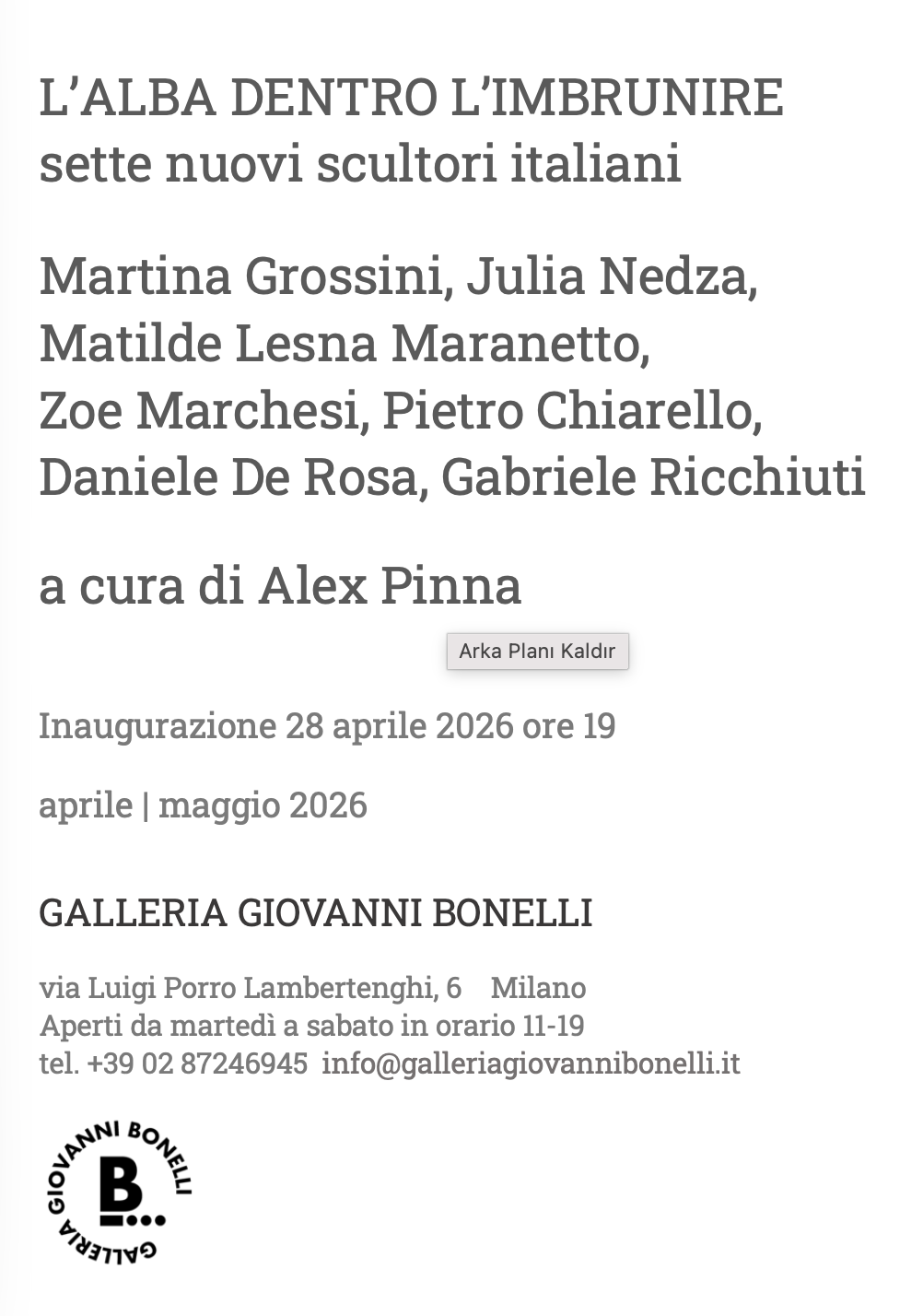 Si inaugura martedi 28 aprile 2026, alle ore 19.00, presso la Galleria Giovanni Bonelli di Milano, la mostra