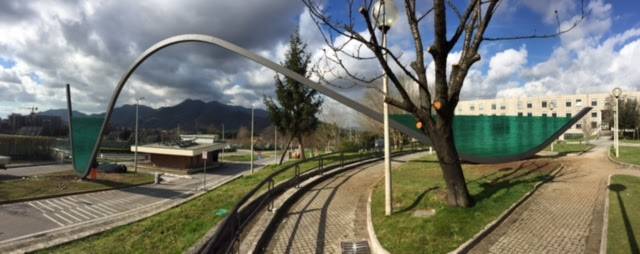 Come scrive nel catalogo generale, edito da Skirà, Maria Passaro (professore ordinario di Storia dell’arte contemporanea e responsabile scientifico del progetto di Ateneo): «L’albero di Costas Varotsos è orizzontale, come sono orizzontali certi alberi della cuccagna di antica tradizione. Quello di Varotsos è un nastro in acciaio ondulato, snello e sinuoso. Strisce di vetro riempiono, come acqua nei vasi, le curve che toccano la terra. L’acqua è un chiaro riferimento alla terra, da cui ogni albero trae alimento. Un’acqua simbolica o “nutrimento spirituale” per usare le parole di Varotsos, che raggiunge la stessa altezza nelle due curve creando, per l’occhio, una linea retta: un orizzonte. A ben guardare, l’opera offre più orizzonti. Perché c’è anche quello della scultura che è dinamica, flessuosa, che ha l’andamento di un tratto di curva.