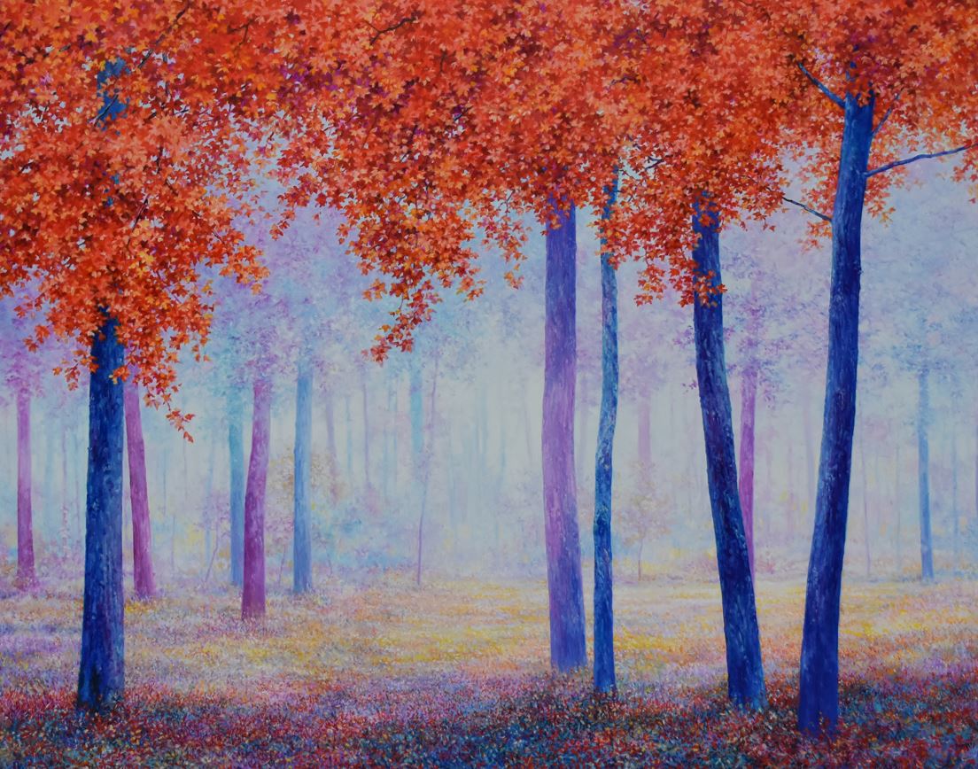 Resta sempre la natura il centro dell’indagine di Ubertiello. La stessa natura che gli ha insegnato e comunicato in tanti anni di lavoro, l’ha portato a rivedere il proprio processo creativo, a rimettersi in gioco, allargando la tavolozza cromatica a una gamma di colori finora inesplorati, capaci di trasportare nel sogno, nella dimensione immaginativa, verso la possibilità di un “oltre” al di là della tela. I paesaggi a lui cari delle pianure brumose, delle radure silenziose e dei boschi colmi di una quiete immobile, si accendono di nuovi soffi di vita e di sogno grazie a una nuova luce che si posa sui soggetti, che apre varchi di colore in cui il ricordo si interseca alla suggestione delle emozioni.