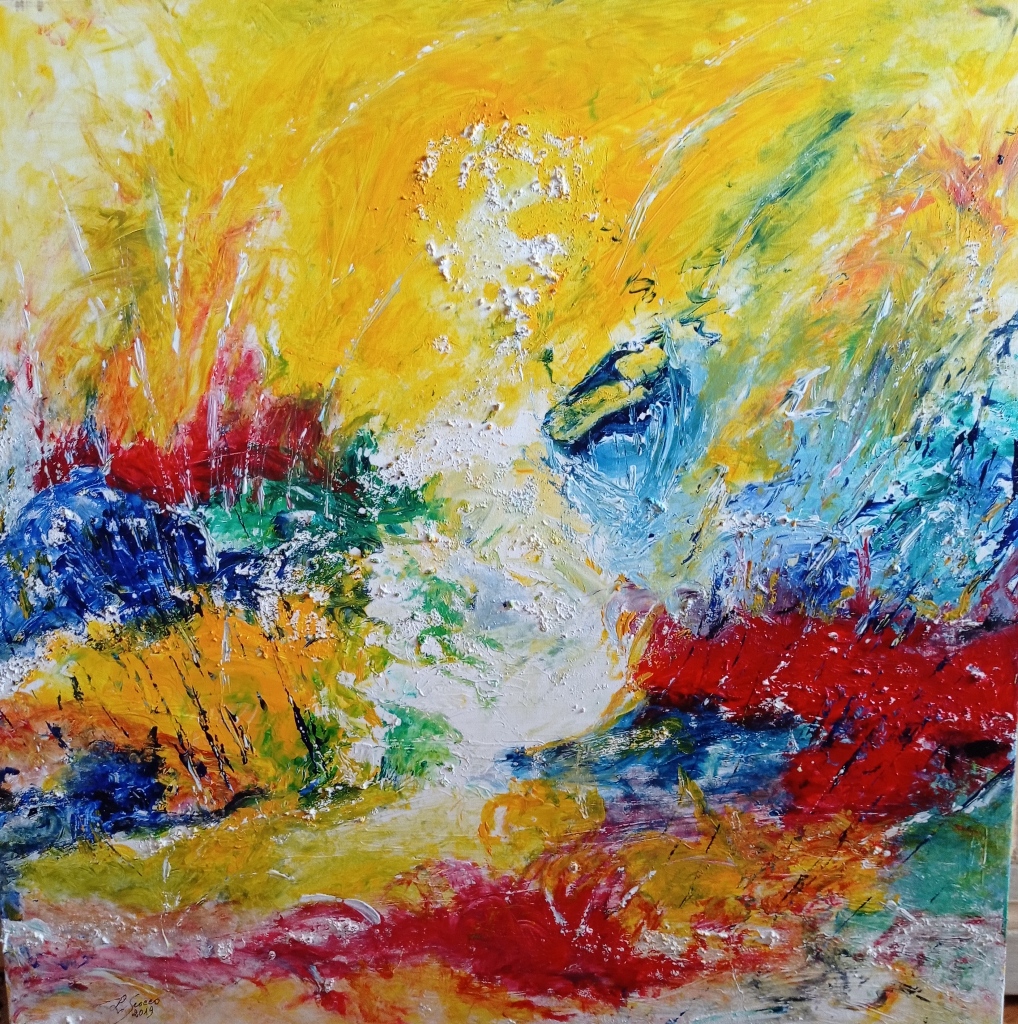 delle Avanguardie Storiche ma ha avuto una naturale e indubbia predilezione per l’Astrattismo: non l’Astrattismo Geometrico di Piet Mondrian, piuttosto freddo e matematico, ma per quello più libero e spontaneo, più lirico e musicale di Joan Mirò e Vasilij Kandiskij. A tutto questo, però, la nostra artista ha saputo aggiungere intuito e invenzione, novità e freschezza affrancandosi con decisione da ogni condizionamento culturale e proponendo un’espressione autentica e vera, un linguaggio ed una cifra stilistica che sono solo ed esclusivamente suoi.