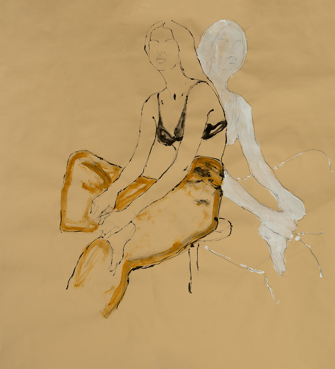 Una mostra site specific nella quale De Luca riprende i contenuti della sua ricerca artistica e li scandaglia ancora una volta. Da sempre interessato a indagare l’essenza della figura femminile, le forme della natura e la dualità dell’esistenza, questa volta l’artista avvia un’ulteriore ricerca introspettiva che gli permette di vagliare questi temi, esplorando le diverse stanze della sua interiorità. Gioia e dolore, forza e fragilità, paura e audacia sono opposti che coesistono dentro ogni essere umano. E nella convivenza di questi opposti, qualcosa è mostrato e qualcosa è celato. Il vuoto lasciato nella tela e il tratto non delimitato offrono una metafora di questo equilibrio tra ciò che si vede e ciò che rimane nascosto, ma invitano anche a godere dell’opportunità della persistenza dell’indagine introspettiva: la ricerca non si esaurisce nello spazio delimitato, in questo caso dalla tela, ma può proseguire senza confini.