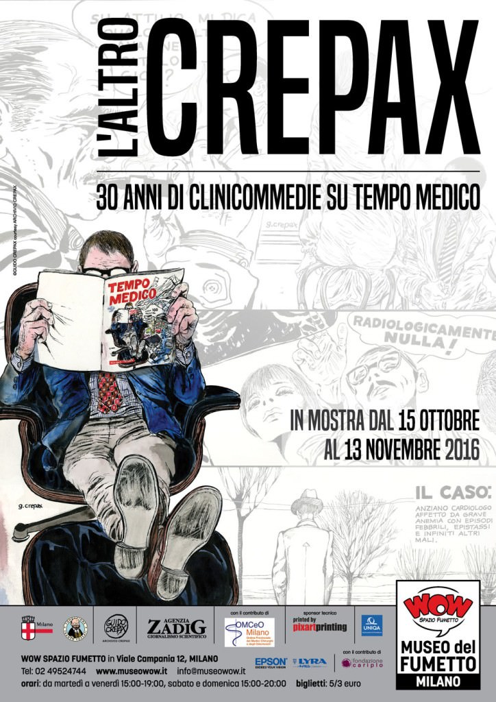 All’inaugurazione, sabato 15 ottobre alle ore 16,30, saranno presenti Luigi F. Bona (direttore di WOW Spazio Fumetto), i figli di Guido Crepax, Roberto Satolli (presidente Zadig ed ex direttore di Tempo Medico), Carlo Roberto Rossi (presidente dell’Ordine dei Medici di Milano) e Luca Clerici (Delegato del Rettore per la Promozione delle attività culturali dell’Università degli Studi di Milano). Modererà Pietro Dri (ex direttore di Tempo Medico).