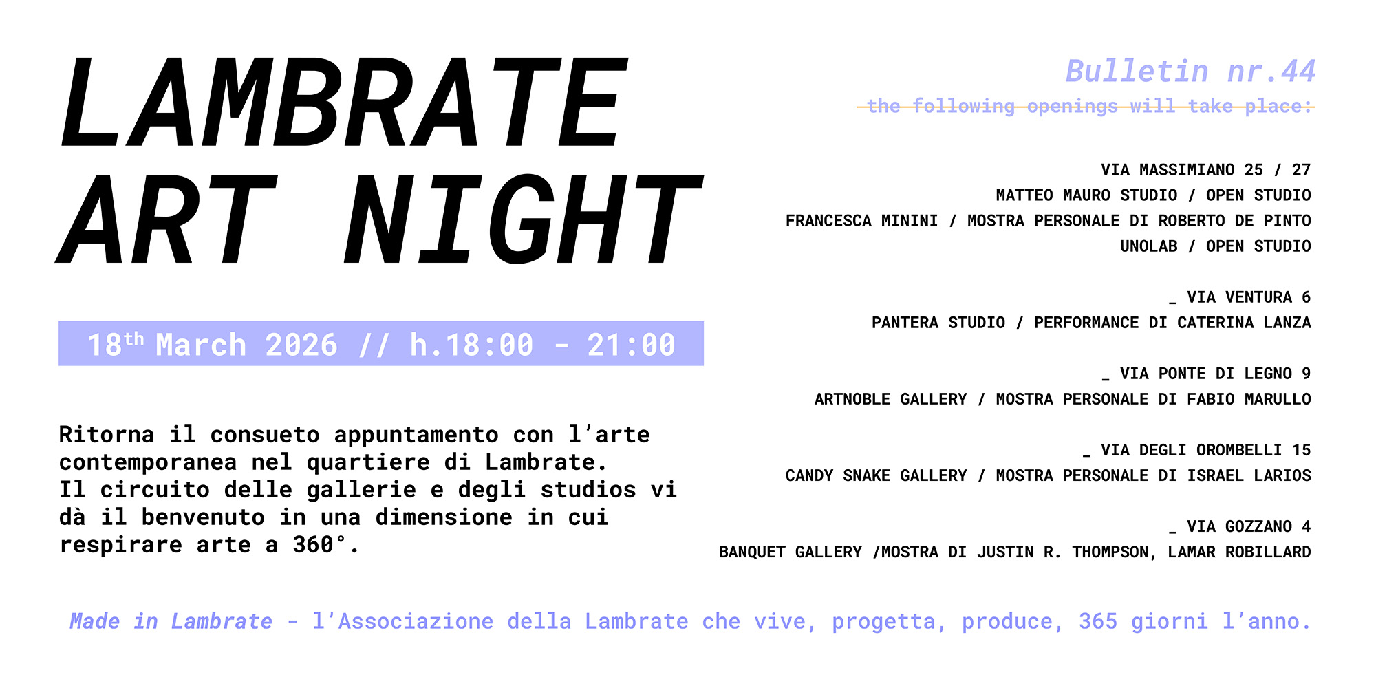 Lambrate Art Night – Bulletin Nr.44