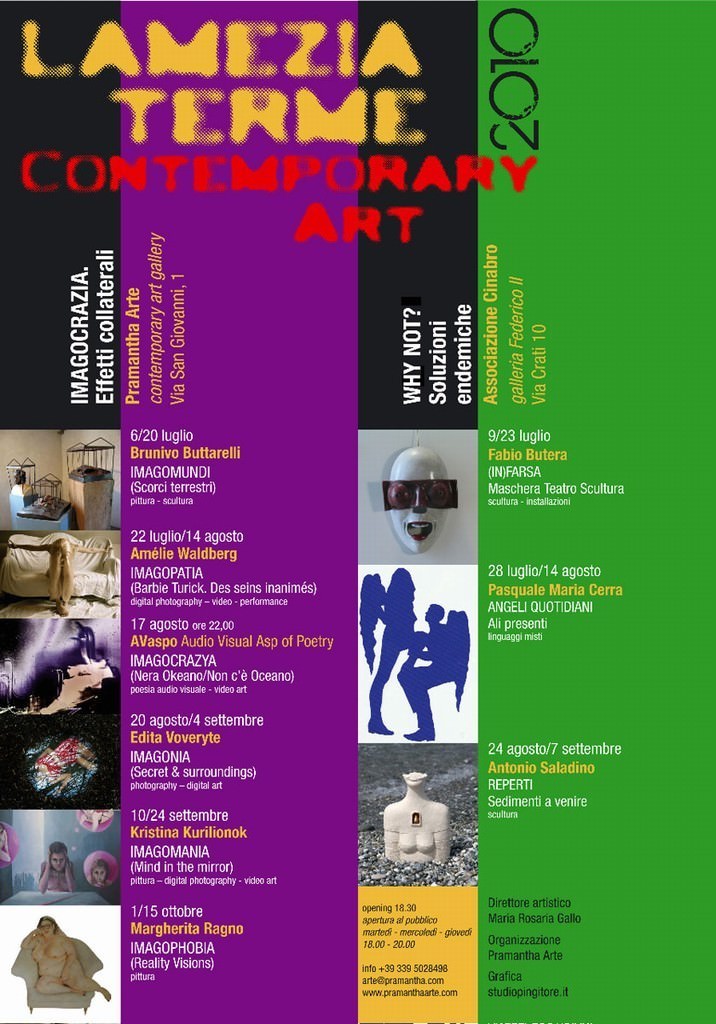 Prende il via Lamezia Terme. Contemporary art 2010. Un programma espositivo dal sapore europeo, promosso e organizzato dalla galleria Pramantha Arte, che coinvolgerà la città rendendola protagonista del contemporaneo con una doppia/parallela rassegna di mostre ed eventi, sotto la direzione artistica di Maria Rosaria Gallo.