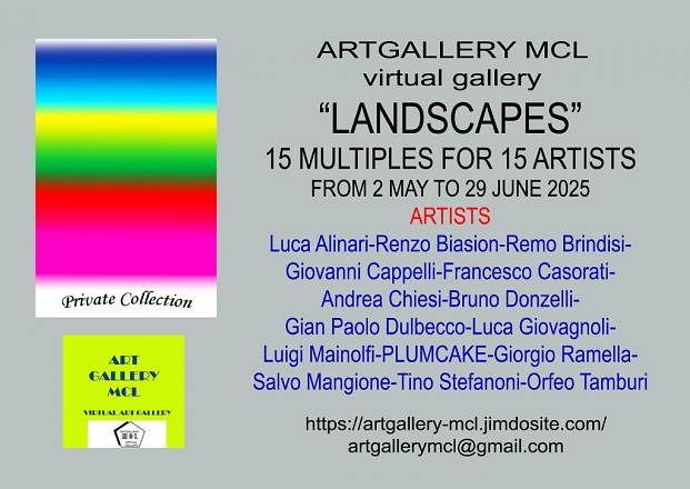 La galleria virtuale ARTGALLERY MCL è lieta di annunciare il lancio della sua nuova mostra collettiva intitolata "LANDSCAPES - 15 MULTIPLES FOR 15 ARTISTS". Questa esposizione sarà visibile esclusivamente online dal 2 maggio al 29 giugno 2025, aperta ai visitatori 24 ore su 24, offrendo un'opportunità imperdibile per esplorare l'arte contemporanea comodamente da casa.
