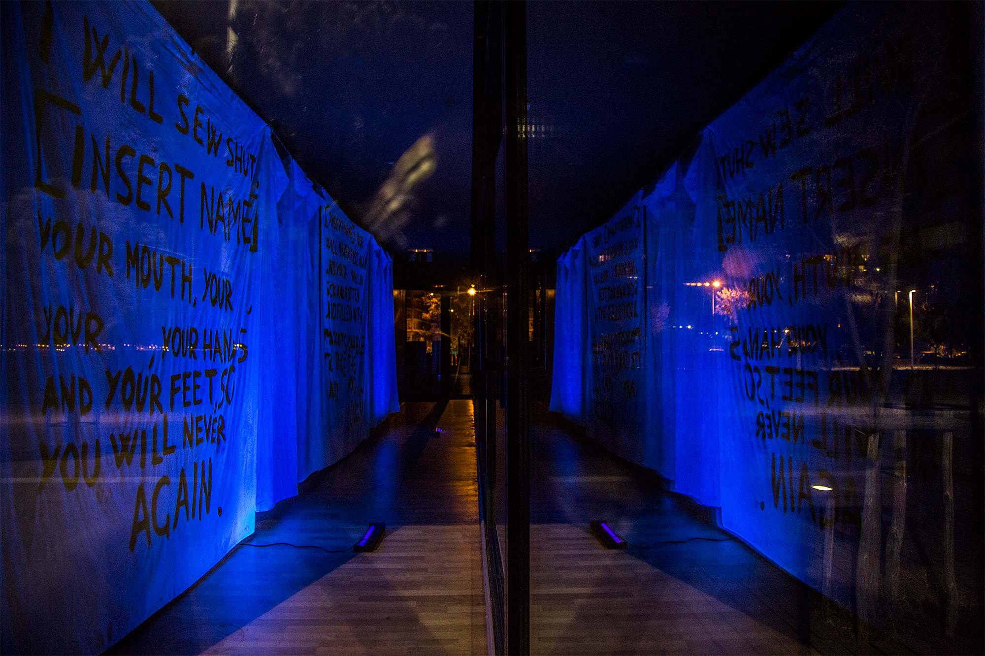 WHISPERS OF AMNESIA è il titolo dell'installazione ambientale di Lanfranco Aceti, che lavora sulla memoria e - come scrive la curatrice - "ci invita ad essere testimoni dei fantasmi del tradimento, delle ombre dell'abbandono e della lotta per dimenticare ogni singolo giorno ciò che è passato, alla ricerca della volontà di vivere un altro giorno. Mentre questi sussurri risuonano nel conflitto tra il ricordare e il dimenticare, le opere d'arte chiedono agli spettatori di svelare gli eventi tossici e dimenticati del passato, ricordando tutto, ogni singola cosa, per avvicinarsi il più possibile alla verità (ἀλήθεια) e allontanarsi dalle catene dell'amnesia sociale (λήθη).