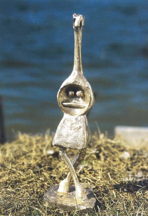 Ma, soprattutto, ci sono le sculture, che segnarono l’avvio della carriera artistica di Lanfranco. Figlio di scultore, allievo di Giacomo Manzù all’Accademia di Bologna, fra la fine degli anni Quaranta e i primi anni Cinquanta Lanfranco s’impose all’attenzione proprio per la sua opera scultorea, conquistando anche importanti riconoscimenti, come il primo premio per una formella del portale del Duomo di Milano, e attirando il consenso di un maestro come Henry Moore. Anche nella scultura, i suoi soggetti si muovono verso un mondo fantastico, popolato da personaggi inquietanti, che si muovono nella dimensione della pura astrazione, oppure richiamano le suggestioni di un esotismo ancestrale, quasi fossero “le sculture di un Africa immaginaria, oppure di un remoto Katai, visitato da un Marco Polo dei sogni” (Giorgio Celli). Del resto, è lo stesso Lanfranco a spiegare, nell’intervista a cura di Eristeo Banali “Il lavoro di scultore: orientare il pensiero agli “archetipi”. Vi è un’arte rassicurante fatta di figure, paesaggi, impressioni di colore o concetti di realtà. Ma vi è un’altra arte inquieta e irrazionale che si presenta sconosciuta ed è sempre accompagnata da pericoli, specialmente quando varia ed esce dagli schemi e chiede una strada diversa. La ricerca dell’inesplorato archetipo che è dentro di noi. L’archetipo ancestrale che risale alla notte dei tempi e che giace nella coscienza collettiva degli uomini. Questa rinasce quando si entra volutamente nella ‘nube della non conoscenza’, quella cercata dai mistici per il contatto e la scoperta di messaggi e visioni inconoscibili”.