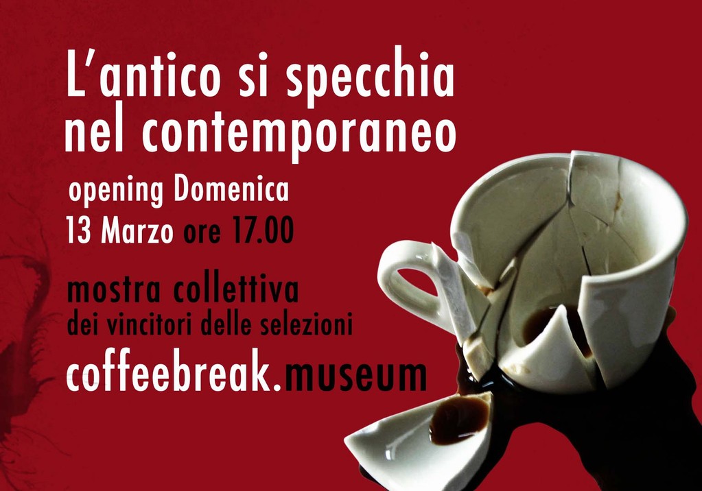 Collettiva Coffeebreak.museum:”L’antico si specchia nel contemporaneo”.Il museo aprirà tutte e 7 le stanze all’interno delle quali saranno allestite le opere dei vincitori delle selezioni,sottolineando il dialogo esistente tra la collezione settecentesca e le opere dei giovani artisti contemporanei.