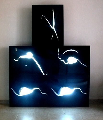 In questa ottica nascono i lavori degli artisti presenti alla ricerca di percezioni sul buio e la luce con Alfredo Quaranta o all'equilibrio spaziale e alla luce cosmica di Albamuth, ma anche alle carte nautiche e alle simbologie dell'oroscopo(Oscar Barrile), e dell'onirico con Agron Bytyqi, al mito delle Pleiadi con Nadia Cera, alla lotta tra luce e buio di Angelo De Francisco, ai Tarocchi, ricchi di simbologie ed animali fantastici di Silvia De Gennaro, al blu di Giulio De Mitri, alle -meduse cosmiche- di Angioletta De Nitto, a Nix la notte per Michele Drascek. Con Pasifae, storica moglie di Minasse, re di Creta e nome di un satellite del pianeta Giove opera Fosca, mentre Nina Gabriel crea preziosi collages sui simboli geometrici sacri, Stefan Havadi-Nagy indaga le reazioni di fusione termonucleare che avvengono nelle stelle, Anja Kranjc, porta in mostra sculture diafane e lunari, e Magda Milano ironizza sul binomio tra Stella cadente in relazione alle lacrime di san Lorenzo e una star contemporanea. Piu' metafisiche le opere di Tanja Milharčič e Ben Mitchell che operano sulle fasi lunari, mentre Eric Pelka ci invita a riflettere sulle parole di Charaka: «L'uomo e' l'epitome dell'universo; cio' che e' nell'universo e' nell'uomo, cio' che e' nell'uomo e' nell'universo».