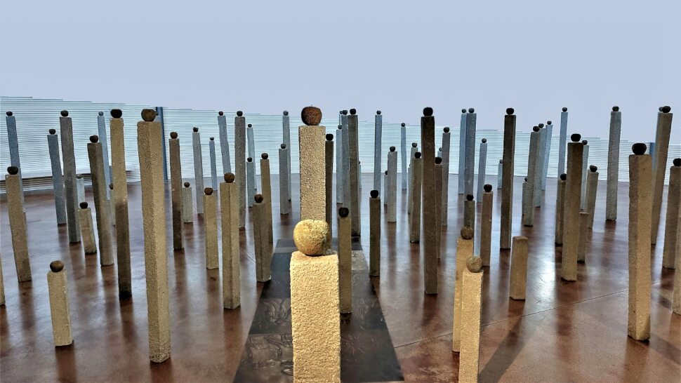 L’installazione di Ignazio Fresu (una distesa di parallelepipedi sormontati da sfere che oscillano al minimo contatto) dà alla gravità un ruolo centrale. “La sospensione tra stabilità e caduta – evidenzia Magni – diventa figura dell’esistenza: come la materia, anche noi esseri umani siamo fatti in gran parte di vuoto e tenuti insieme da forze invisibili”. “Fresu – rileva Vanni – non considera il dubbio come una condizione fondamentale per la conoscenza, bensì come un fattore che emerge, e deve essere accolto come tale, durante qualunque riflessione scientifica e filosofica. Il dubbio arriva quando la conoscenza non riesce a spiegare inedite evidenze o non comprende le modalità di risolvere problemi”.