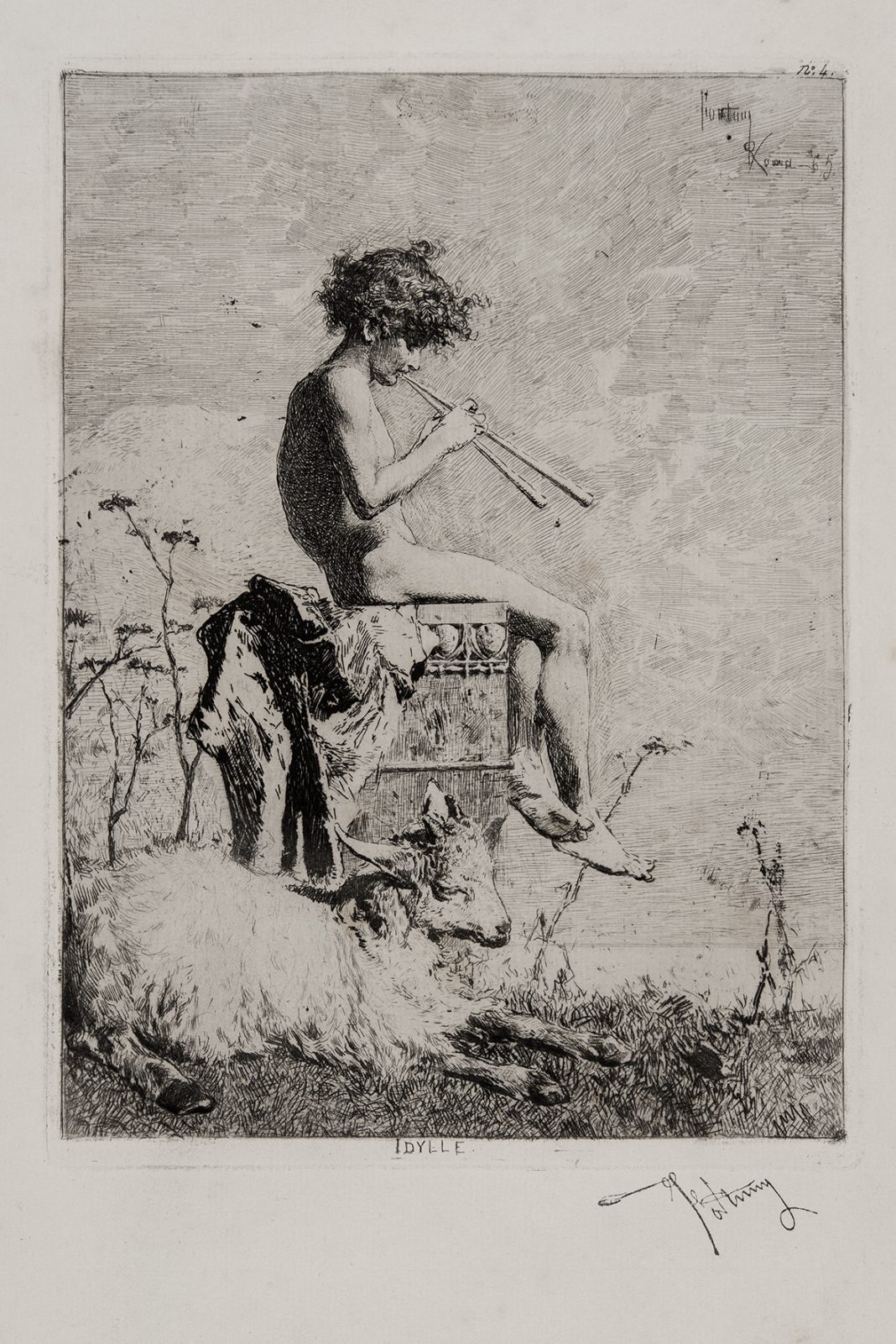 All’Ottocento appartengono due opere di autori romani, Cesare Biseo e Attilio Stefanori. Il primo, dopo aver viaggiato in Egitto, si lega a tematiche orientaliste e realizza nel 1865 uno Studio di Leoni , il secondo affascinato dall’arte legata alla natura e al paesaggio, realizza una bellissima stampa Il Bosco, in acquaforte a monotipo, una tecnica cui si erano applicati grandi artisti come Giovanni Benedetto Castiglione e William Blake e che si caratterizza per ottenere opere uniche, non ripetibili.