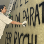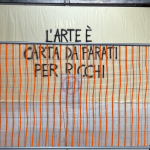 Dalla lotta al lavoro, al senso di appartenenza fino al privilegio e ricominciando dalla lotta, la mostra si apre con la bandiera, simbolo di scontro ma anche del rischio della caduta nella sua retorica, “Art workers = artworks”, in cui il “Quarto Stato” fa da sfondo a un paragone inusuale: e se fossero i lavoratori dell’arte (quindi il sistema) la vera opera? La lotta, nella sua degenerazione, si trasforma in senso d’apparenza, in esclusività che esclude chi non fa parte della tribù.