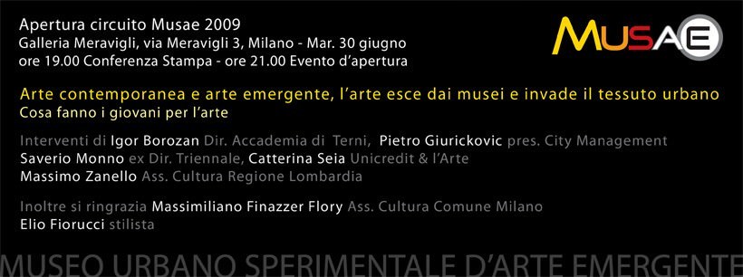 MUSAE - Museo Urbano Sperimentale d’Arte Emergente - sceglie Milano per l’apertura del circuito nazionale 2009 con un grande evento live multimediale con videoart, performance e musica.