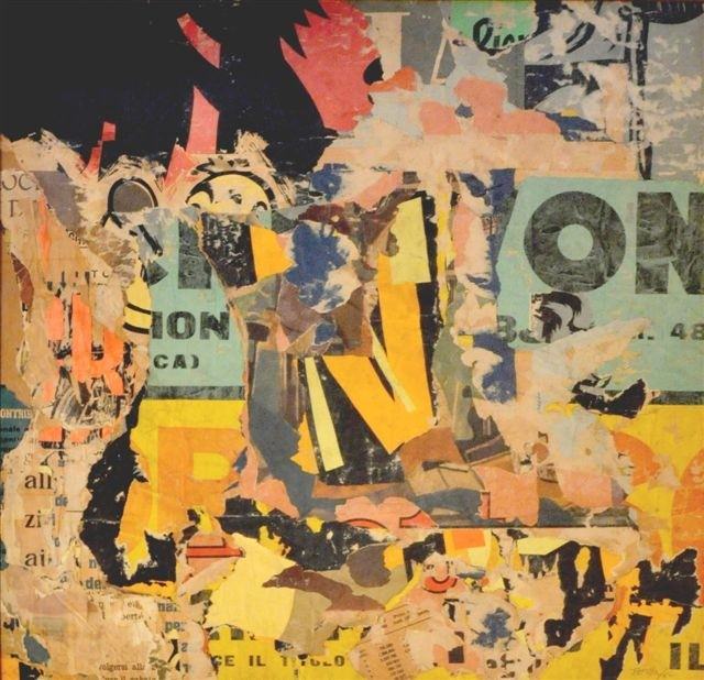 Pensiamo a Enrico Baj che nelle sue “dame” e nei suoi “generali” trasforma i tappi di analcolico in occhi, le nappe in capelli e così via: La dame aux marguerites del 1960 in mostra è un significativo esempio di quanto si è appena detto. Altrimenti è il supporto a essere sollecitato per trasformarsi in stimolante base creativa ( pensiamo ad Agostino Bonalumi, a Dadamaino e a Remo Bianco ). Una variante è l’atteggiamento di Christo inteso a rendere anche tattilmente fruibili quei suoi “progetti” votati all’ estroflessione. Piero Gilardi si avvale invece del poliuretano per modellare paesaggi edenici; di rimando Aldo Mondino gioca anche con lo zucchero per modulare le sue opere. Per Mimmo Rotella è il rimaneggiamento di un manifesto strappato il fulcro della creazione; per Sophia Vari invece la seduzione compositiva è concessa dall’accumulo dei ritagli di grandi carte colorate.