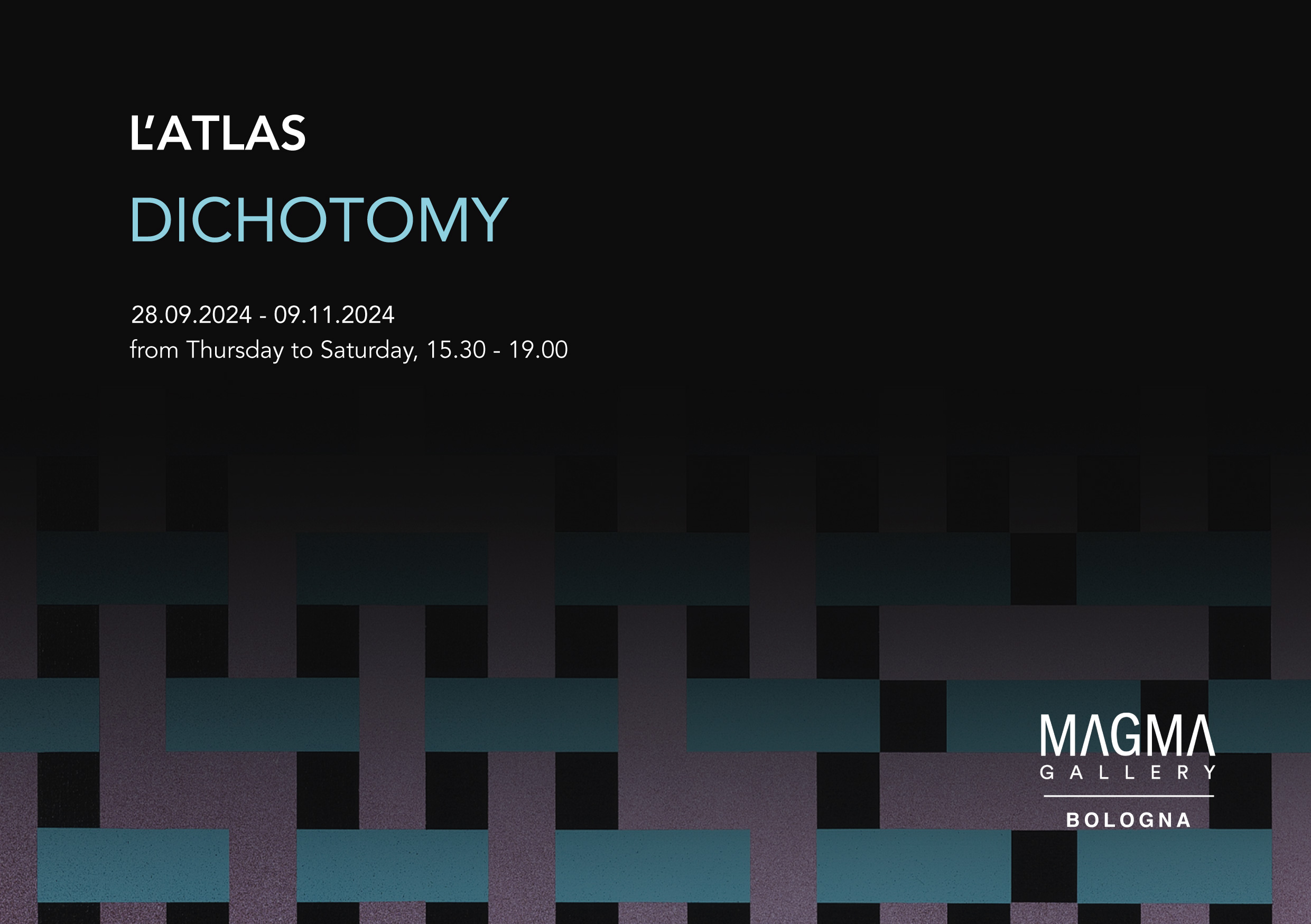 MAGMA Gallery è lieta di presentare la nuova collaborazione con l'artista francese Jules Dedet Granel, alias L'Atlas, in occasione della mostra personale 'Dichotomy' presso la nostra sede di Bologna. L'artista sarà presente in occasione dell'inaugurazione di sabato 28 settembre - ore 18.30/20.00.