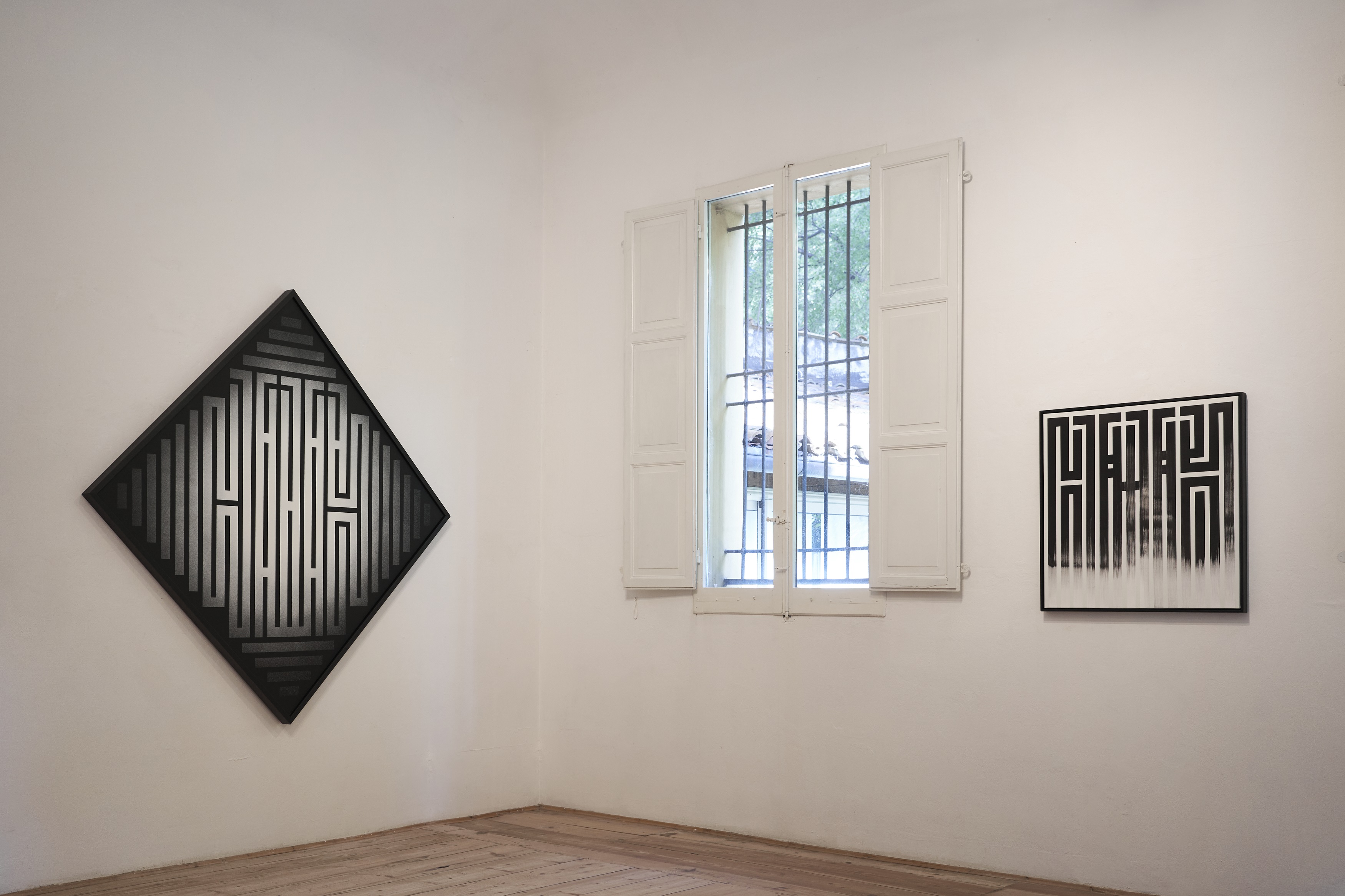 Il suo interesse per la calligrafia è conseguenza della sua passione per i graffiti, in quanto L’Atlas è affascinato dal gesto puro, quello che non può essere ritoccato, un gesto che può essere inteso come il respiro dell’uomo cristallizzato dall’inchiostro. Dopo un lungo percorso di studio e ricerca l’Artista ha mescolato questo apprendimento classico con la tipografia latina e con strumenti più moderni, usando la grafica contemporanea. Una scrittura candida fatta di labirinti, linee regolari, scansioni ritmiche, con richiami ai sistemi segnici di antiche calligrafie orientali, innestate su un background anni ’90 legato al writing e all’underground metropolitano.