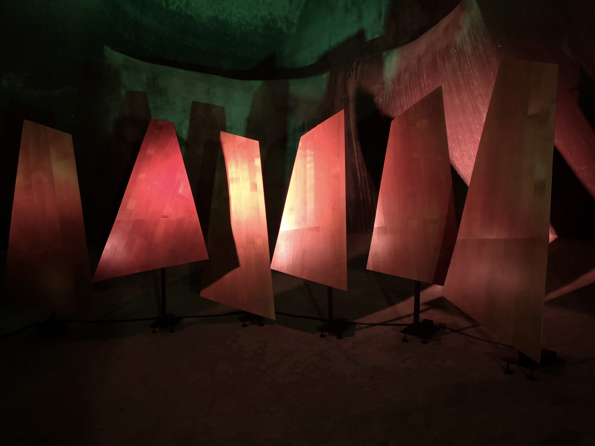 L’ installazione che esalta le proprietà acustiche dell’ area d’intervento, è caratterizzata da una modalità di diffusione del suono di tipo “planare”. E’ interattiva e la musica si trasforma nel tempo per azione del visitatore. E’ composta da sei Planofoni®, superfici vibranti in legno armonico.