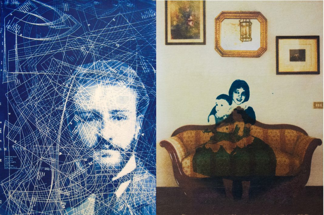 Annotazioni in blu date dalla cianotipia, una delle antiche tecniche fotografiche, nostalgia evocata da istanti di vita quotidiana in Marta Di Donna oppure da volti sconosciuti di inizio Novecento, in Laura Di Fazio. Due artiste che dal passato personale e fotografico creano nuove forme espressive.