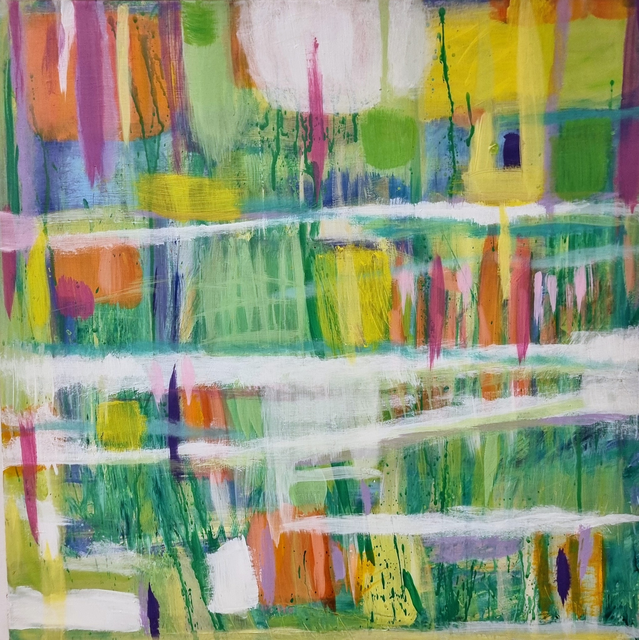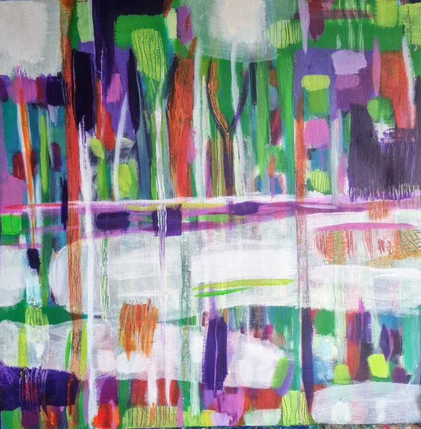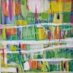 Anche in Laura Gioso nel suo percorrere gli argini, come in un “volo a bassa quota”, la geometria dei campi da una parte e, dall’altra, le immaginifiche golene, si fanno sogno: fruttuoso innesto di silenziose contaminazioni; e in quest’aria surreale tutto pare mutarsi in plancton luminescente o in iridescenti squame. Ecco che allora le sue opere pittoriche appaiono come un arcipelago di colori. Il segno è frastagliato, spettinato dal vento, bagnato dal fiume, mosso da un costante dinamismo. Tutto ha l’energia espansiva del fiume e del suo delta sconfinato.