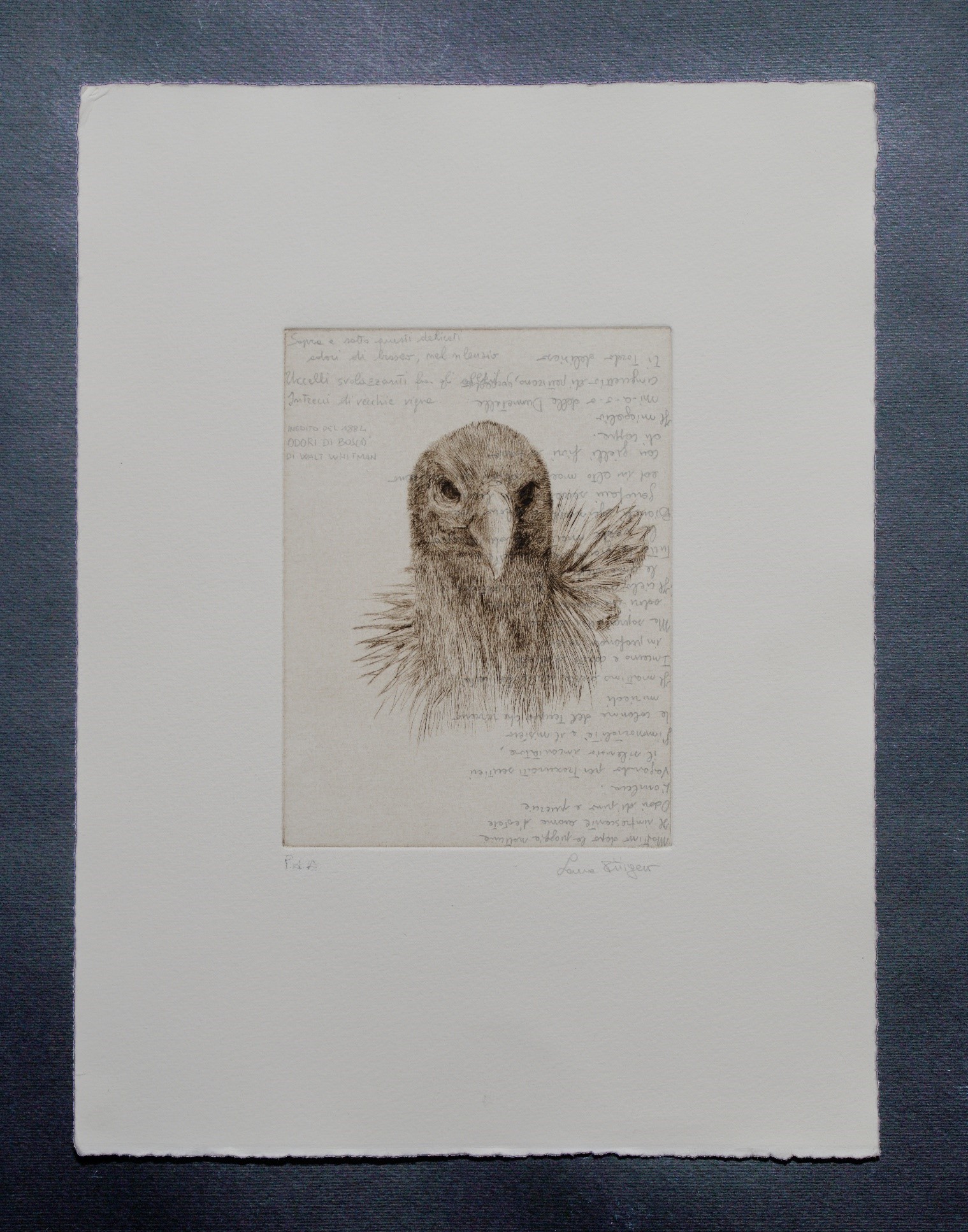 La mostra di Laura Pitingaro muove i suoi passi dalla poesia di Walt Whitman Odori di bosco scoperta per caso su una bancarella. I versi del poeta americano incrociano la sensibilità dell’artista veronese per immetterla su una strada artistica che risvegli consapevolezza rispetto alla natura circostante attraverso la chiave dello stupore, affinché gli umani imparino nuovamente il rispetto per il proprio ambiente. Il percorso ideato da Laura Pitingaro per l’Orto Botanico dell’Università di Palermo parte dal Tineo, nel quale le teche luminose assolvono alla perfezione il proprio compito conoscitivo con la disposizione di numerose serie di opere dedicate alla natura: dipinti di volatili in via di estinzione (Estinti) e atmosfere di nuvole (Pigmenta 30x30), disegni e stampe che studiano dettagli di uccelli e piante, nonché un racconto multimediale che inserisce gli Estinti in un panorama futuribile con audio-racconto. La struttura classicista del Gymnasium viene invece compenetrata dall’artista con tre installazioni delicate ed effimere che ne sottolineano le forme monumentali e stupiscono per la loro natura inaspettata: dalle pareti della sala centrale pendono delle tasche in tessuto e sui mobili crescono dei germogli, mentre l’Erbario Storico si riempie del suono del cielo. Nella Serra Maria Carolina, infine, Laura Pitingaro tematizza il rispetto per la natura con una performance in cui agisce sugli strumenti con cui i botanici si prendono cura della natura, intersecando la propria azione in maniera armoniosa con il canto, la danza e la musica.
