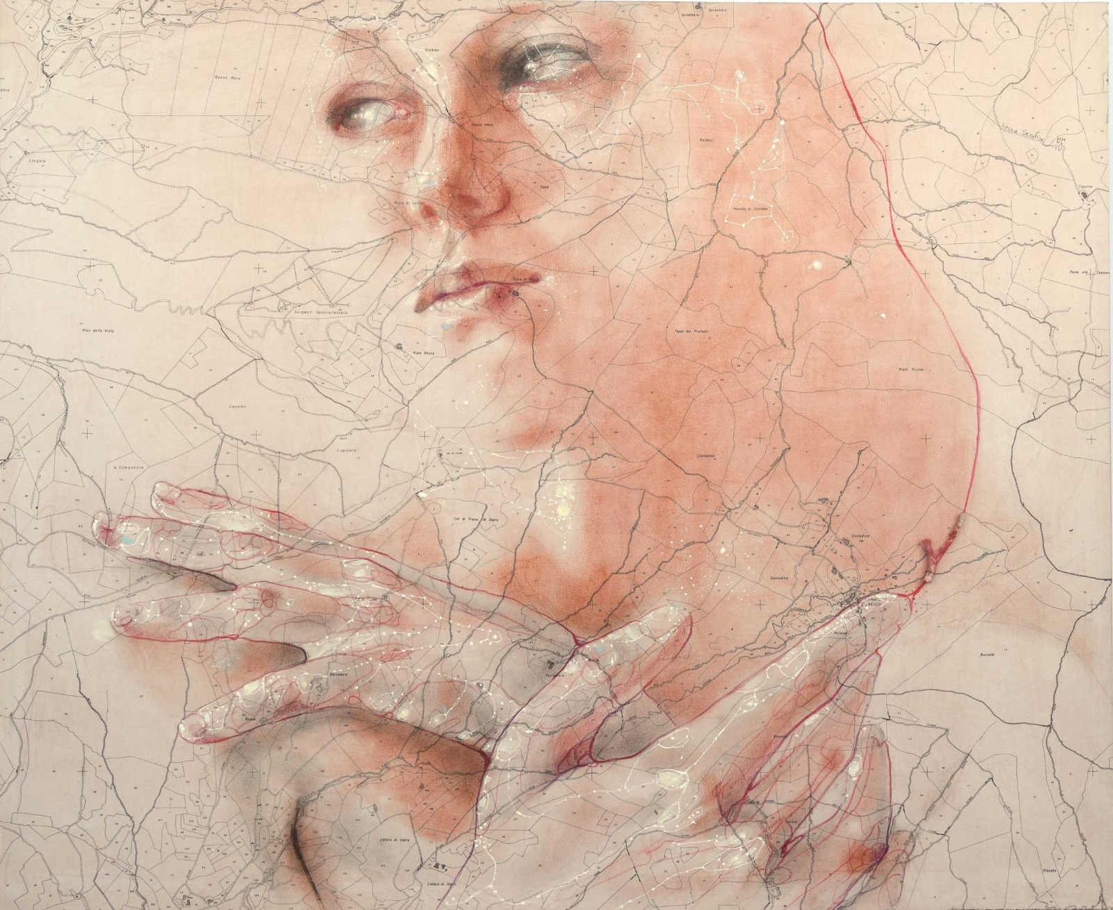 Carte tecniche, cartamodelli e mappe vengono elevate al ruolo di trama/destino, accogliendo una sorta di dna tracciato sulla pelle e reso visibile con linee, numeri, parole e punti. Queste rappresentazioni visive diventano chiavi per decodificare un'identità umana profonda, complessa e sfaccettata, in cui la donna è spesso la protagonista privilegiata della ricerca.