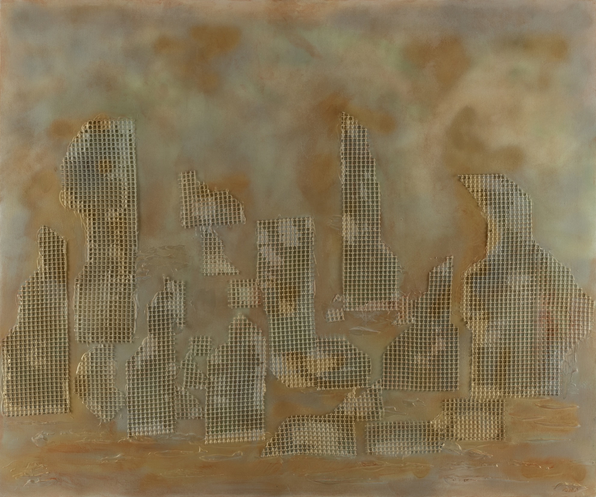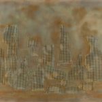 Al pianoterra, un’esplosione cromatica richiama la tradizione delle piante architettoniche e urbane, sovvertendone il carattere statico: città ideali, utopie cartografiche che progressivamente si spengono nel nero, prefigurazione di un dramma imminente. Salendo al piano superiore, l’architettura si frammenta e si confonde con la rovina, evocando scenari di silenzio e assenza. Un dialogo visivo e concettuale con Le città invisibili di Italo Calvino, che si fa riflessione sulla memoria collettiva e sulla possibilità di resistenza estetica.