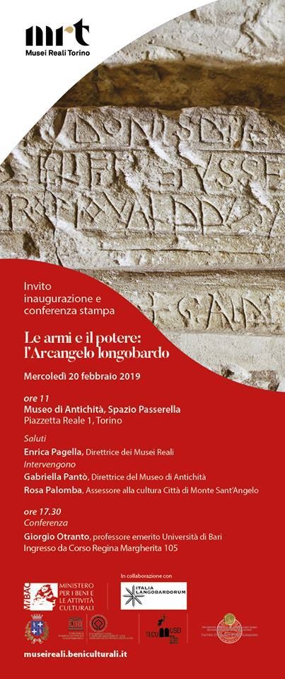 Con Le armi e il potere: l’Arcangelo longobardo, i Musei Reali aderiscono al progetto promosso dal MiBAC e dall’Associazione Italia Langobardorum, dal titolo Longobardi in vetrina, che promuove la diffusione della conoscenza della cultura longobarda. La collaborazione e la sinergia tra i siti UNESCO, i musei della rete, e quelli nazionali che sono espressione dei territori di forte valenza longobarda, come il Piemonte, che nel Museo di Antichità conserva una collezione longobarda tra le maggiori in Italia, hanno permesso di individuare sette grandi temi declinati in quindici mostre temporanee che avranno luogo nel 2019.