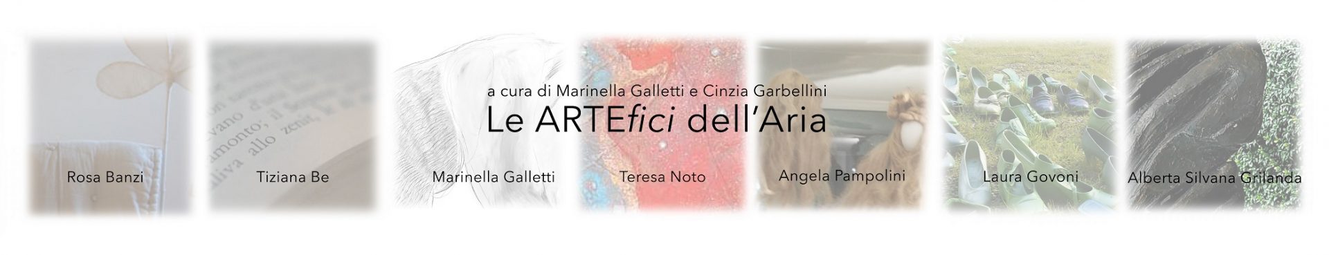 Rosa Banzi, Tiziana Be, Marinella Galletti, Laura Govoni, Alberta Silvana Grilanda, Teresa Noto, Angela Pampolini, artiste dal curriculum di alto livello, propongono la propria personale esplorazione “infinitesima dell’aria”. Artiste provenienti da diverse esperienze dei linguaggi e delle tecniche dell’arte, dalla fotografia, alla pittura, scultura e installazione, accomunate dalla presenza ricorrente, nel loro lavoro, dell’indagine rivolta verso la “materia” invisibile resa manipolabile e palpabile, o del visibile tramutato in aria e luce.