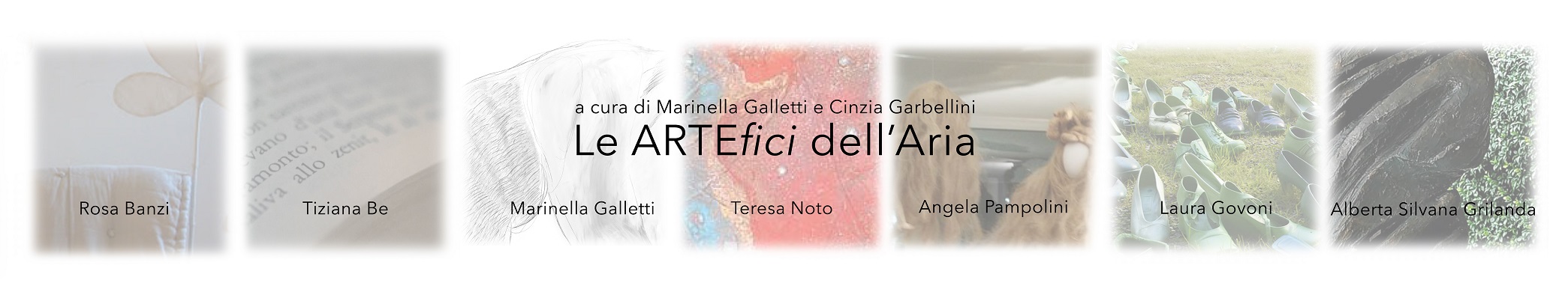 Le ARTEfici del’Aria – Rosa Banzi, Tiziana Be, Marinella Galletti, Laura Govoni, Alberta Silvana Grilanda, Teresa Noto, Angela Pampolini propongono la propria personale esplorazione “infinitesima dell’aria”. Il titolo suggerisce l’ “artificio impossibile”, dell’aria stessa di essere manipolata.