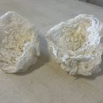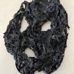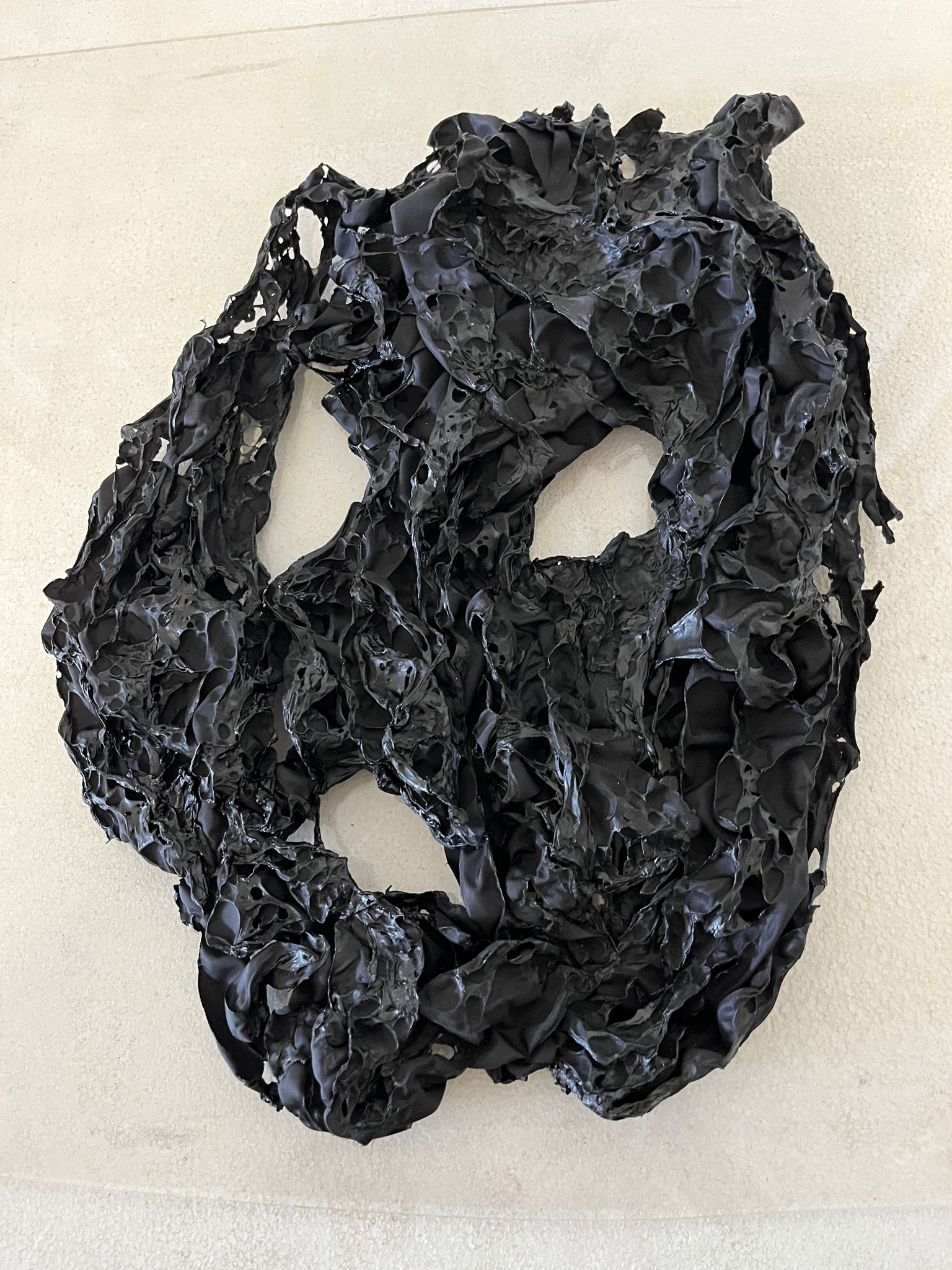 Sempre nell’ambito dell’indagine artistica troviamo la sezione “Scarti di produzione di plastiche morbide”, libere reinterpretazioni di fibre di polimero plastico provenienti da scarti di produzione di aziende tessili. topylabrys in questo caso trae ispirazione dal regno dei fossili e lavora la materia nel pensiero che divenga un prezioso ritrovamento paleontologico del nostro futuro. L’artista spiega: “La plastica pur se tanto temuta è in fondo un materiale di derivazione naturale, la responsabilità sta nell’essere umano e nella gestione che ne fa”.