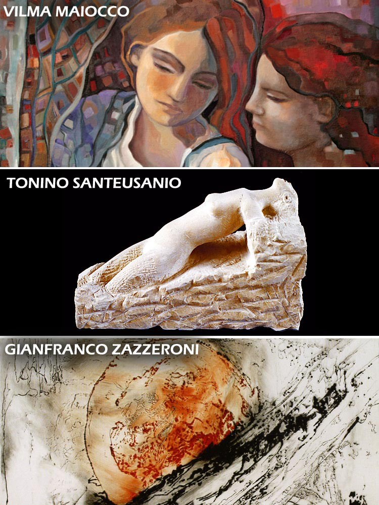 “Chiunque, pur senza averla mai praticata,abbia qualche passione per la scultura, sa bene che si tratta prima di tutto di un gioco di forme, del faticoso piacere nel ricavarle. O nel modellarle, superata la distanza, l’enorme varietà di materiali (tutti racchiusi entro la linea della tradizione), rimane, nel lavoro di Tonino Santeusanio, una pertinace descrizione di curve, quand’anche si specifichino in modelli neocubisti, come smussatura di angoli, crespolatura di superfici, rimandi e giochi di luce. Pur fedele a tale istituto, la scultura di Santeusanio si dà come narrazione di eventi…”