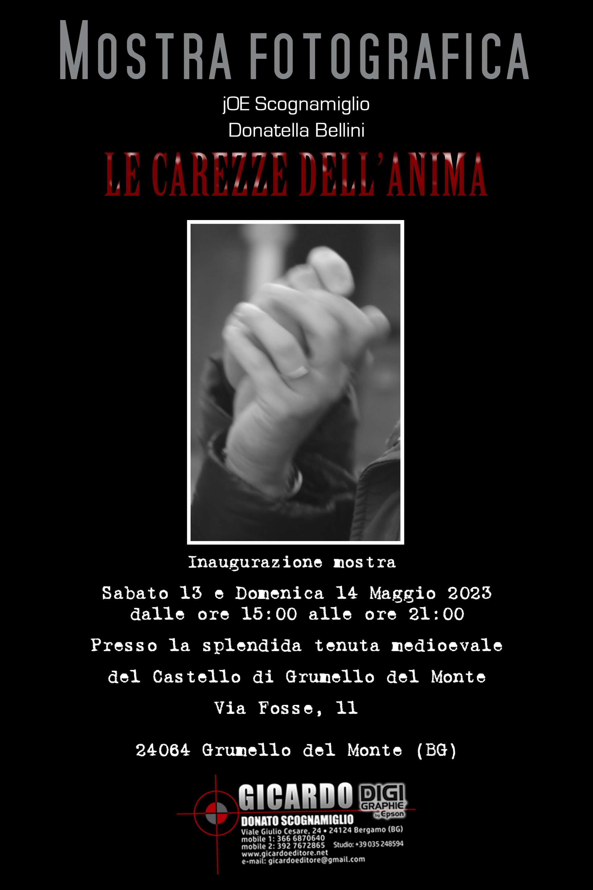 Giuseppe Scognamiglio, dopo anni dal suo ultimo impegno fotografico, questa volta ritorna insieme a Donatella Bellini con la mostra fotografica che non rimane soltanto una mostra ma diventa un progetto fotografico dal titolo: ” Le carezze dell’anima”.