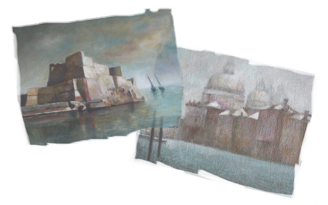 Come ogni estate, apre la collettiva dei soci Controsegno, momento di incontro fra i vari artisti che si confrontano su un tema comune, a cui ognuno aderisce secondo le proprie modalità e sensibilità. Novità di questa volta è l’adesione di alcuni membri del prestigioso Centro Internazionale della Grafica di Venezia, che rendono l’esposizione di respiro internazionale. Pertanto, ispirandoci al passato glorioso di Napoli e Venezia come città marinare, il soggetto proposto è Le città d’acqua. Tante le opere presentate per l’allestimento, che spaziano dalla pittura a olio e acrilico, alla fotografia analogica o digitale e alle tecniche miste materiche. Non solo, la grafica dà il meglio di sé, con disegni a pennarello e acquerelli dalle tonalità fresche e brillanti, oltre all’incisione che si sposta dalla tradizione alla più ardita sperimentazione, dal bianco e nero al colore per sovrapposizioni di lastre o poupée: xilografia e linoleografia a più matrici, incisione su cartone e Tetra Pak, acqueforti e acquetinte, puntasecca su plexiglas, collografia, collage con testi, chine collé, monotipo. Molto suggestiva è anche l’interpretazione dell’argomento, che vede paesaggi napoletani o veneziani con malinconiche lagune e ponti, tramonti sognanti accompagnati da ragazzini spensierati, figure femminili che incarnano la madre terra o il mito pompeiano che non può mancare a testimoniare la presenza fisica e palpante di Neapolis, così come il richiamo alla maschera di Pulcinella o al Vesuvio, laddove le città “parlano” mostrando il substrato profondo che le sottende, di storia e cultura. Ovviamente, la laguna o il mare sono gli interpreti favoriti, accompagnati da conchiglie, barche o fronde lussureggianti. Anche le rappresentazioni astratte o informali, nei loro formati stretti e lunghi, quasi a incedere verso il cielo, nelle cangianti dei celesti e blu, ci ricordano le acque nelle loro svariate tonalità e riflessi.