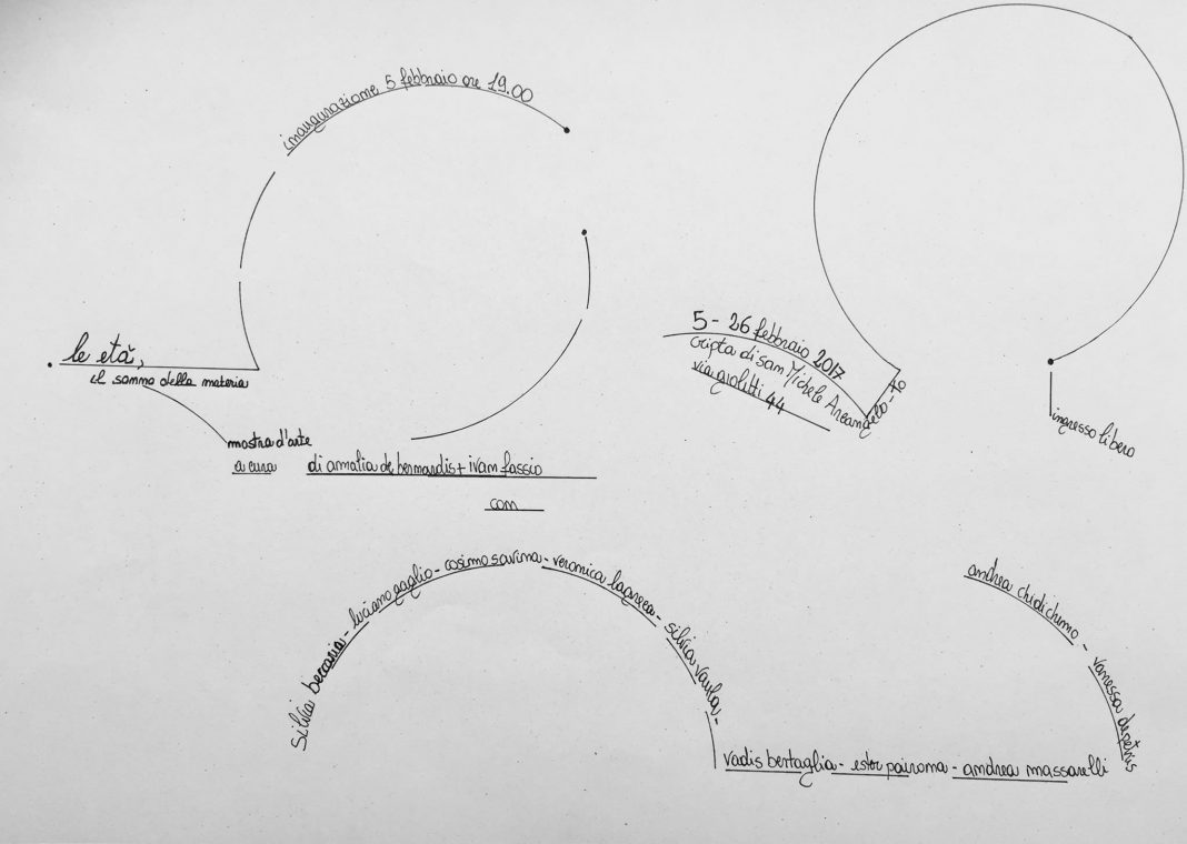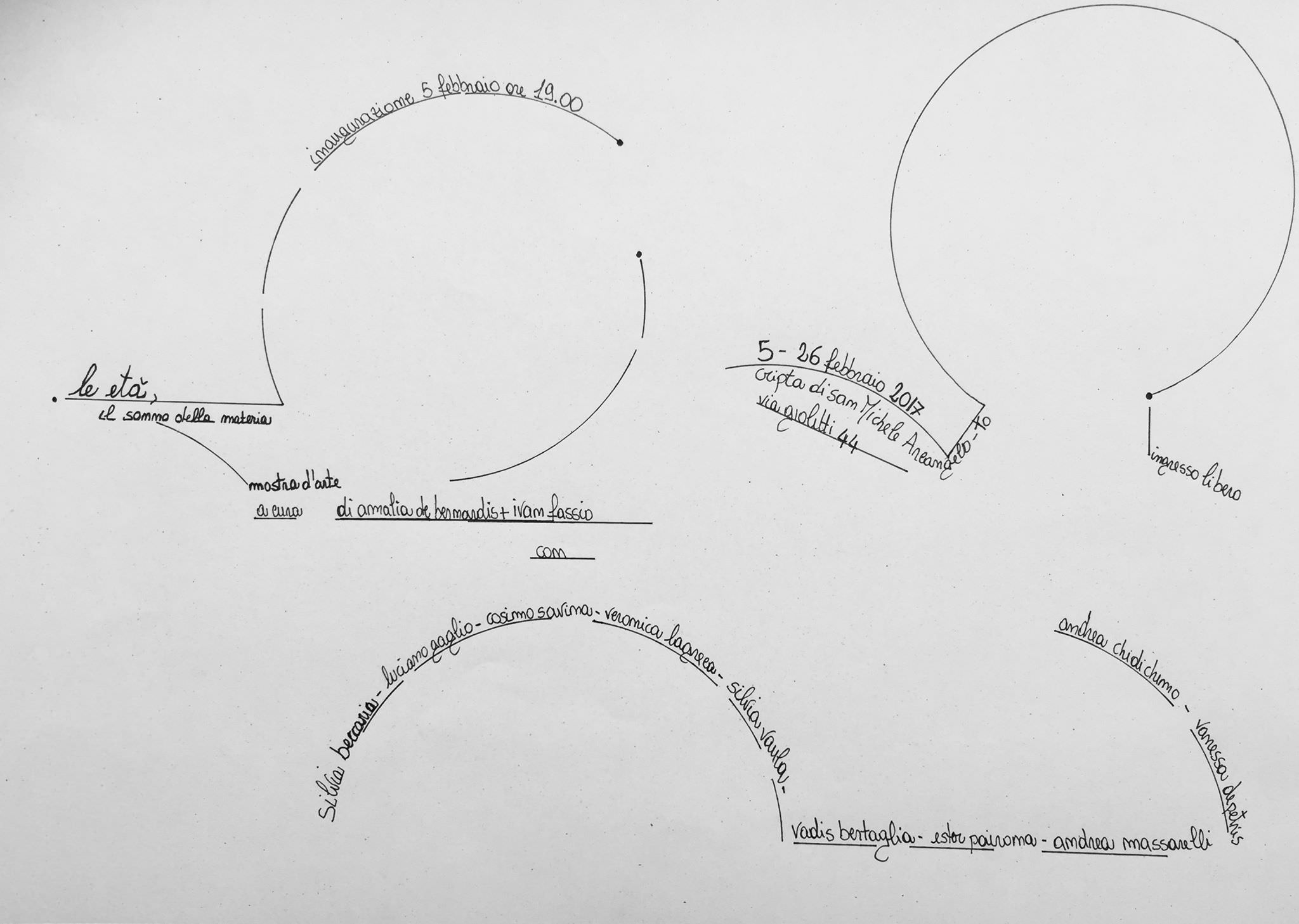 Scultura, pittura, fotografia, installazioni, tecniche miste per una riflessione sulle età dell'uomo, sull'evanescenza e corporeità della materia, sulla ciclicità di corsi e ricorsi.