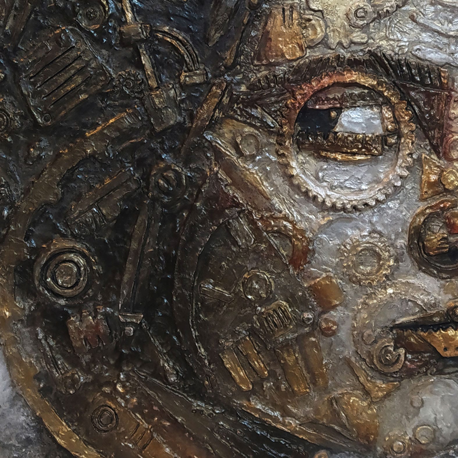 Le figure appaiono come fossili atemporali: una serie di ingranaggi complessi in cui passato, presente e futuro
