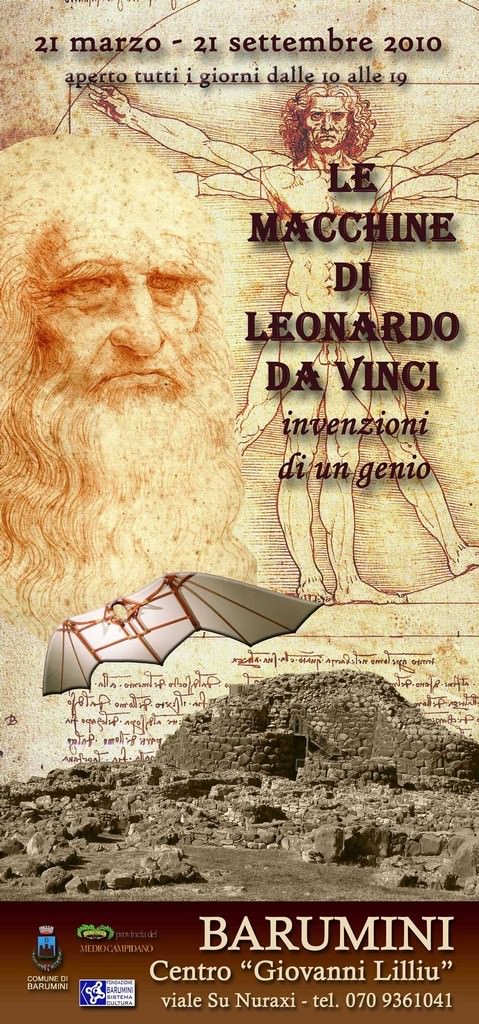 Il tuo browser potrebbe non supportare la visualizzazione di questa immagine. che, a far data dal 21 Marzo 2010 sino al 21 Settembre 2010, il Centro di Comunicazione e Promozione del Patrimonio Culturale “Giovanni Lilliu”, sito in viale Su Nuraxi a Barumini, ospiterà una mostra di notevole interesse: “Le Macchine di Leonardo da Vinci”.