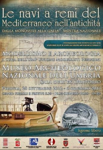 Presso il Museo Archeologico Nazionale dell’Umbria è visitabile la mostra sulle navi a remi dell’antichità. Numerosi i modelli di imbarcazioni, a partire dal neolitico con la monossile, per giungere alle navi lunghe arcaiche e classico ellenistiche, navi che hanno caratterizzato la storia delle marinerie da guerra del Mediterraneo, fino al Medioevo ed oltre, spingendosi al XVIII secolo, con gli splendidi esempi di galee venete. Dalle navi cucite o sutiles naves alle navi assemblate a mortase e tenoni, dalle strutture a fasciame portante a quelle a scheletro portante.