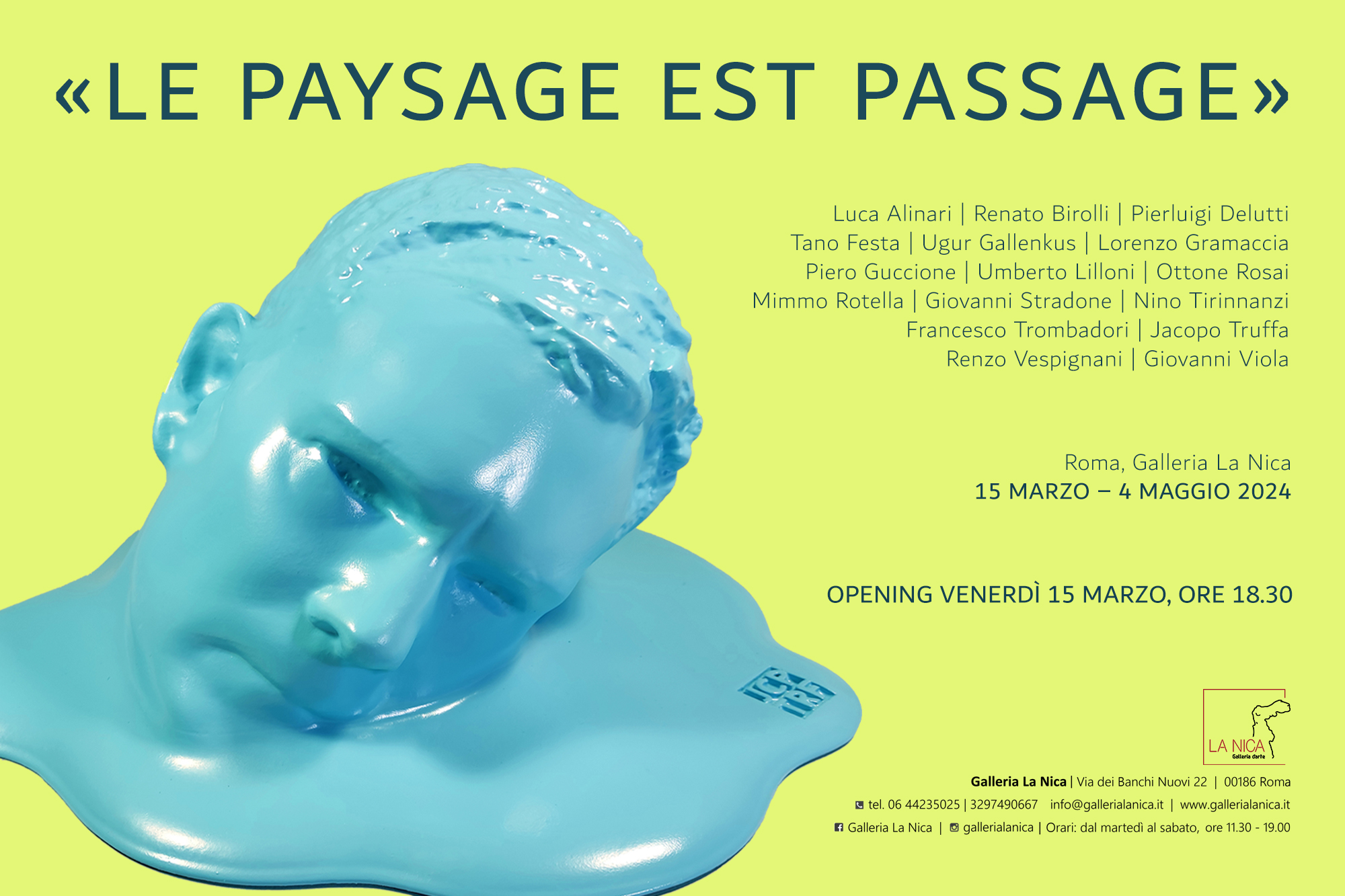 Venerdì 15 marzo 2024 alle ore 18.30 verrà inaugurata alla Galleria La Nica di Roma la mostra collettiva “Le paysage est passage”, che vedrà esposte opere legate al tema del paesaggio ed il suo saper mettere insieme le intenzioni del passato, la forza del presente ed i desideri di futuri possibili.