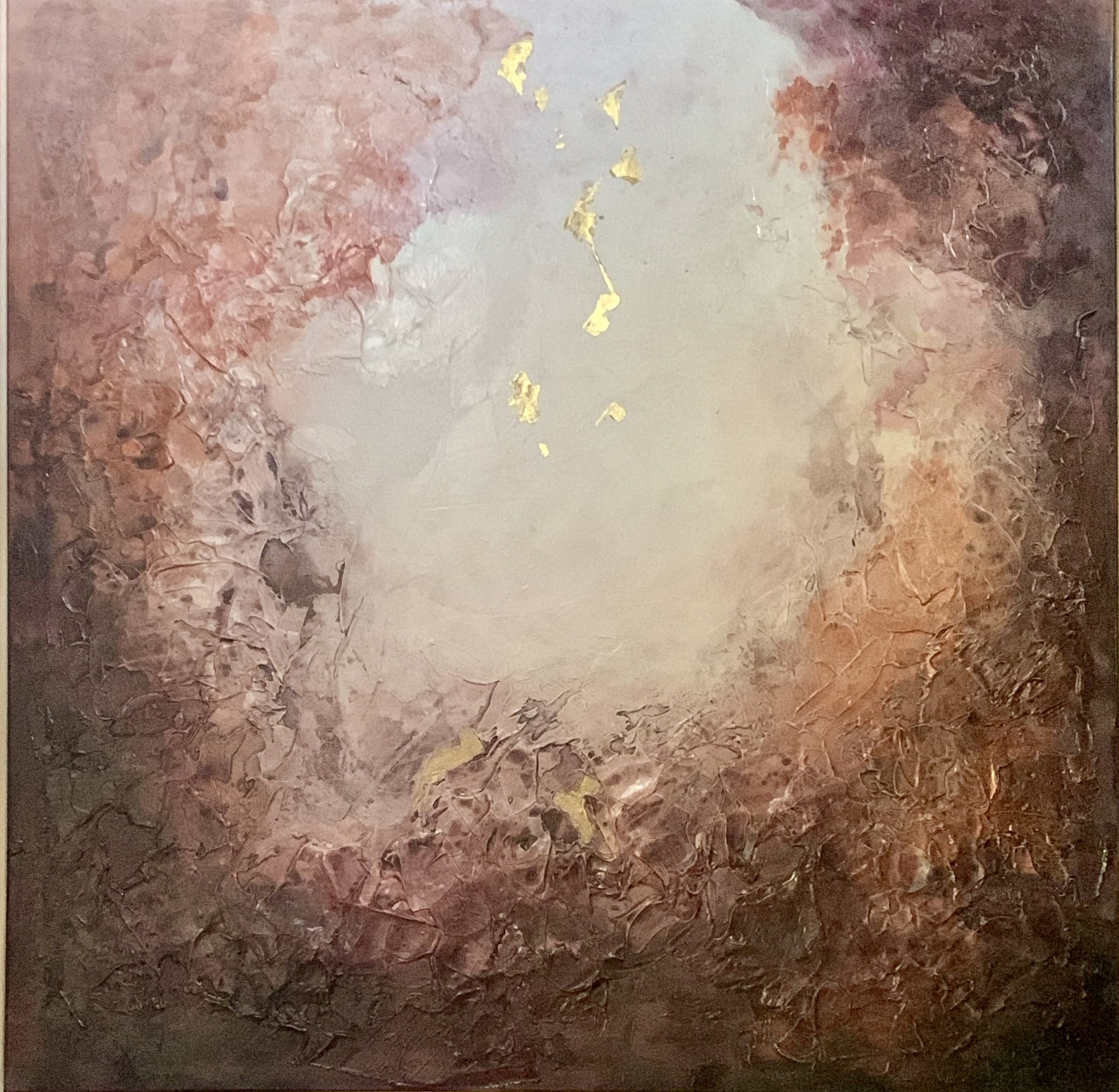 Il linguaggio pittorico è sublimazione del mondo interiore tramite una continua relazione fra il visibile e il non visibile, forma e non-forma. La carta artigianale con la sua granulosità diviene il supporto privilegiato che si combina con stesure cromatiche, inserti materici e a volte frammenti di specchio. In particolare la superficie riflettente esprime il gioco del presentarsi e nascondersi dell'anima in uno spazio indefinito, l’alternanza tra manifestazione e dissolvimento nell’unità del tutto.